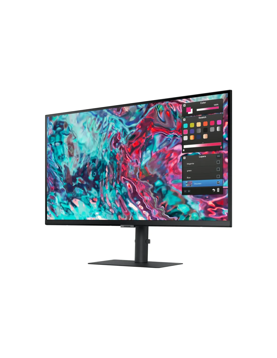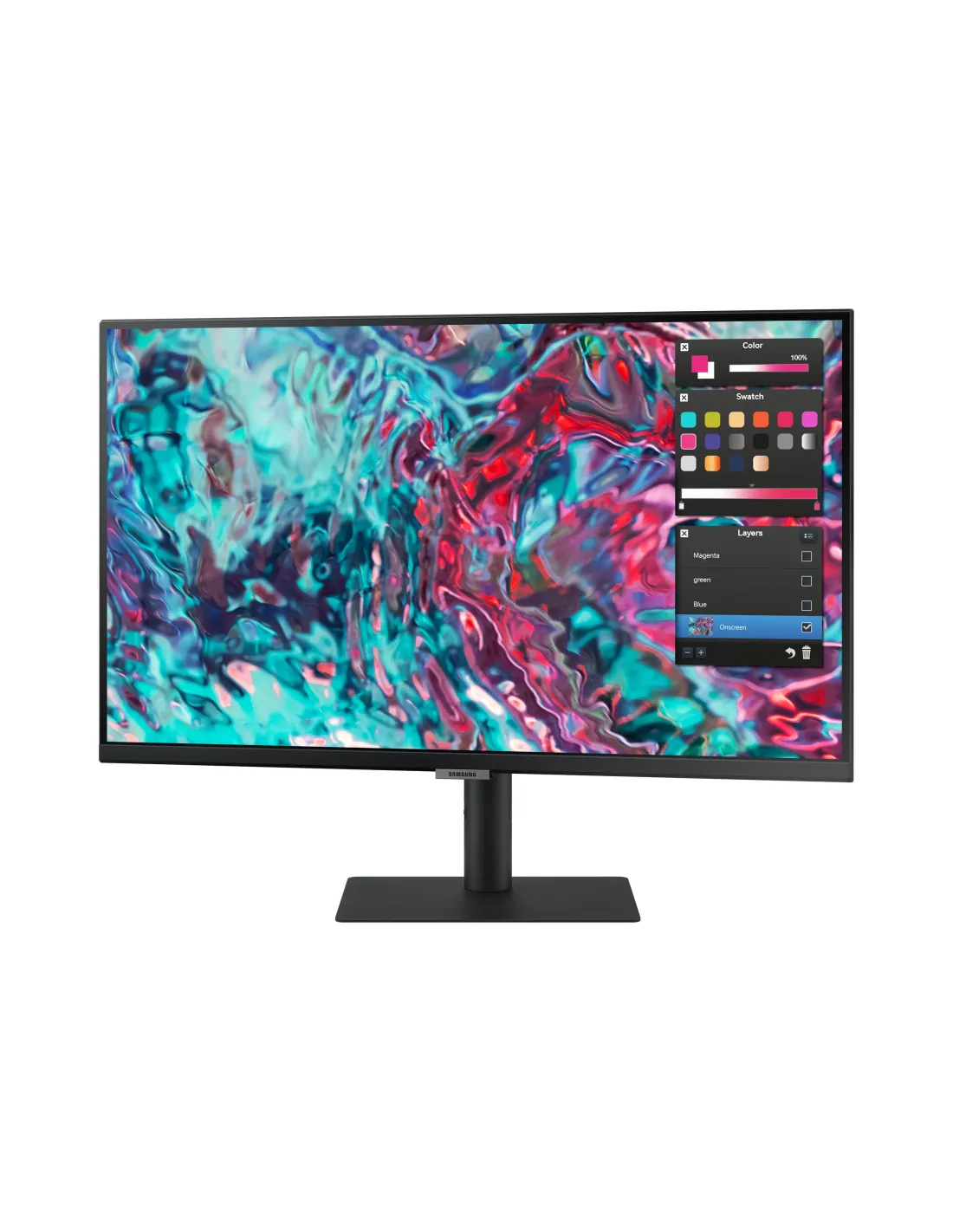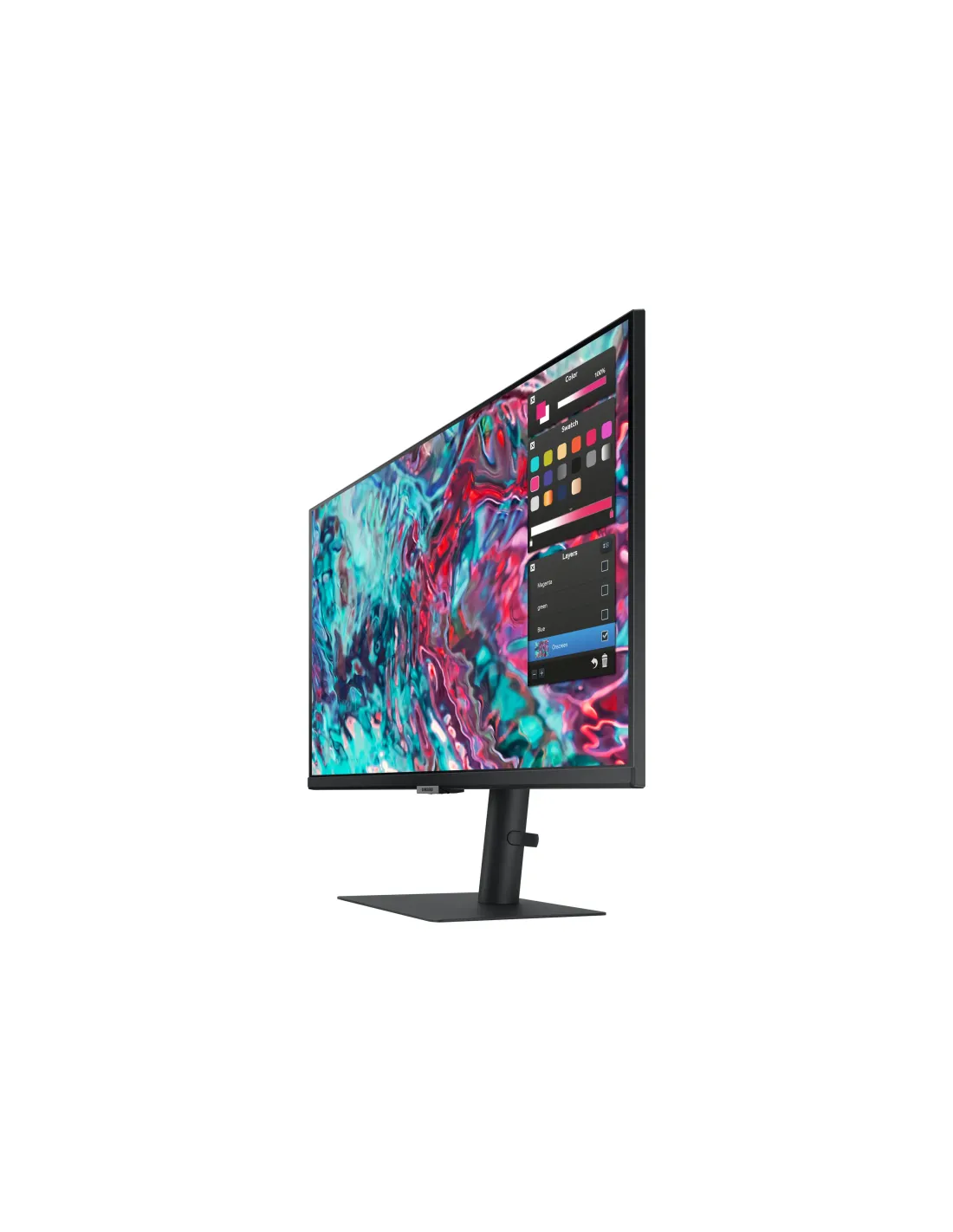 Samsung S80TB. Diagonal de la pantalla: 68,6 cm (27"), Resolución de la pantalla: 3840 x 2160 Pixeles, Tipo HD: 4K Ultra HD, Tecnología de visualización: LED, Tiempo de respuesta: 5 ms, Relación de aspecto nativa: 16:9, Ángulo de visión, horizontal: 178°, Ángulo de visión, vertical: 178°. Altavoces incorporados. Conector USB incorporado, Versión de conector USB: 3.2 Gen 1 (3.1 Gen 1). montaje VESA, Ajustes de altura. Color del producto: Negro