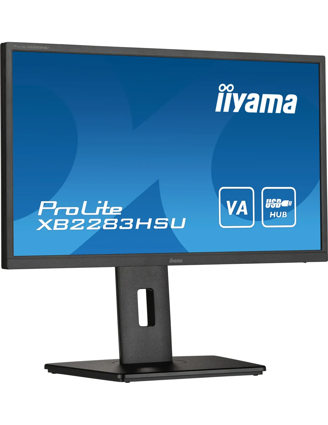 iiyama ProLite XB2283HSU-B1. Diagonal de la pantalla: 54,6 cm (21.5"), Resolución de la pantalla: 1920 x 1080 Pixeles, Tipo HD: Full HD, Tecnología de visualización: LED, Superficie de la pantalla: Mate, Tiempo de respuesta: 1 ms, Relación de aspecto nativa: 16:9, Ángulo de visión, horizontal: 178°, Ángulo de visión, vertical: 178°. Altavoces incorporados. Conector USB incorporado, Versión de conector USB: 2.0. montaje VESA, Ajustes de altura. Color del producto: Negro
