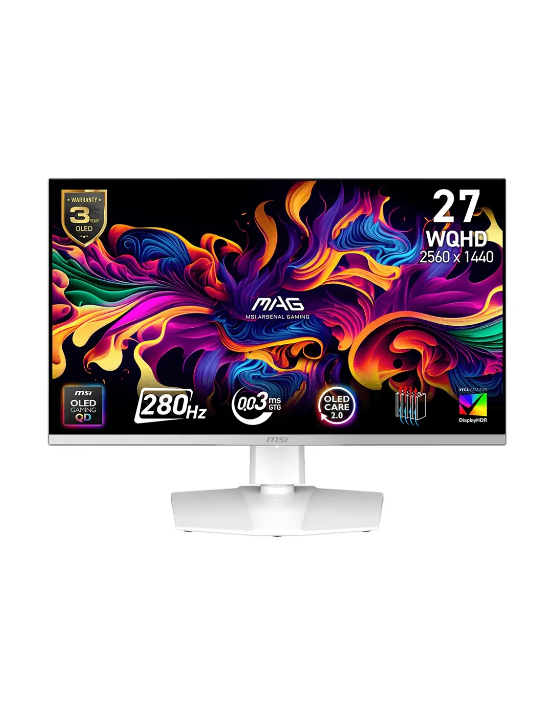 MSI MAG 272QPW QD-OLED X28, 67,3 cm (26.5"), 2560 x 1440 Pixeles, Wide Quad HD, QD-OLED, 0,031 ms, Blanco