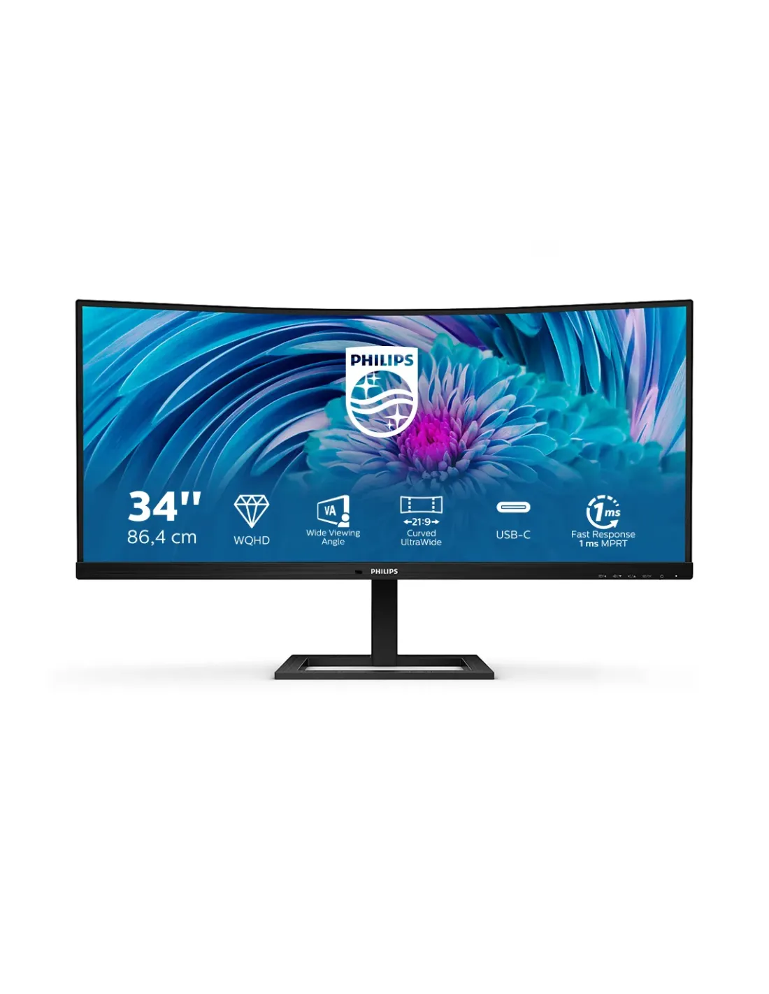 Philips E Line 346E2CUAE/00, 86,4 cm (34"), 3440 x 1440 Pixeles, Wide Quad HD+, LCD, 4 ms, Negro