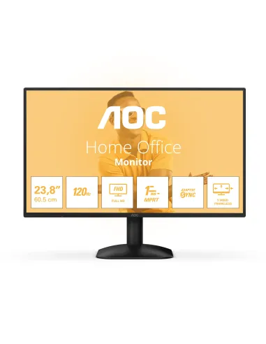 AOC 24B31H. Diagonal de la pantalla: 60,5 cm (23.8"), Resolución de la pantalla: 1920 x 1080 Pixeles, Tipo HD: Full HD, Tiempo de respuesta: 4 ms, Relación de aspecto nativa: 16:9, Ángulo de visión, horizontal: 178°, Ángulo de visión, vertical: 178°. montaje VESA. Color del producto: Negro