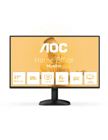 El AOC 27B31H cuenta con una pantalla Full HD de 27", frecuencia de actualización de 120 Hz, MPRT de 1 ms y sincronización Adaptive Sync. Consigue imágenes fluidas y gran capacidad de respuesta. Con poca luz azul, tecnología sin parpadeo y un diseño sin marco de 3 lados, garantiza comodidad visual y una experiencia visual inmersiva.