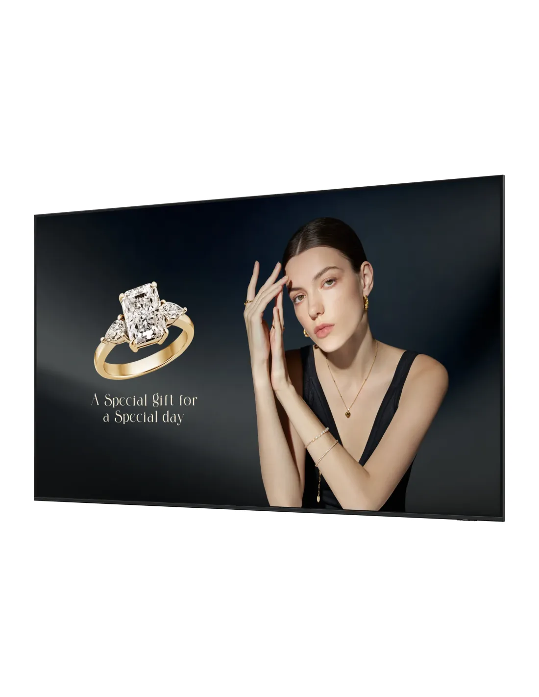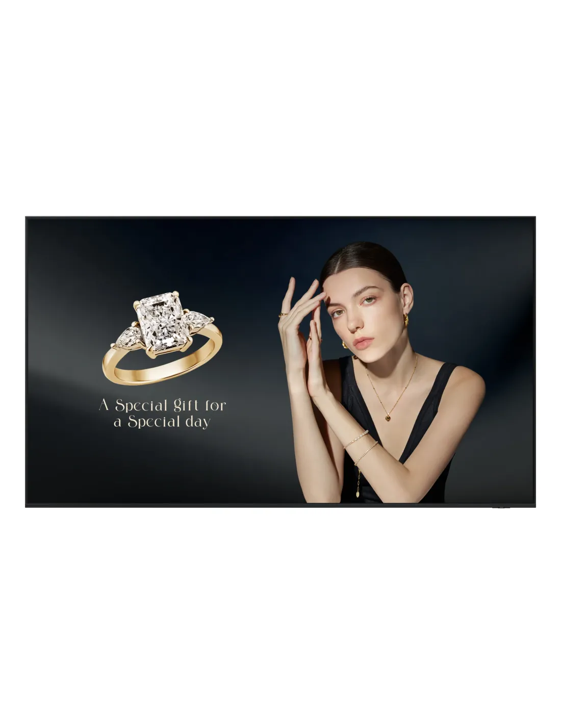 Samsung QH115F-X. Diseño de producto: Pantalla plana para señalización digital. Diagonal de la pantalla: 2,92 m (115"), Tecnología de visualización: LCD, Resolución de la pantalla: 3840 x 2160 Pixeles, Brillo de pantalla: 1000 cd / m², Tipo HD: 4K Ultra HD. Wifi. Horas de funcionamiento (horas/días): 24/7. Sistema operativo instalado: Tizen. Color del producto: Negro