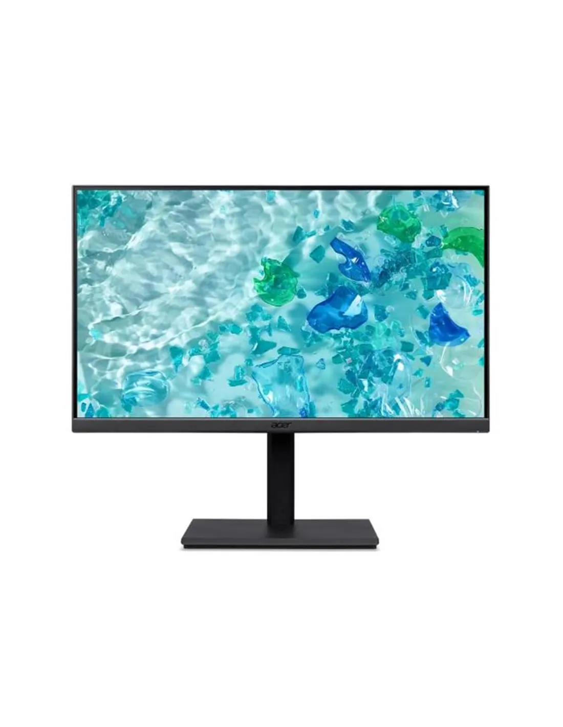 Este modelo forma parte de la línea Acer Vero, enfocada en la sostenibilidad, con materiales reciclados y un diseño funcional. Su estructura en color negro y el diseño sin marco lo hacen ideal para configuraciones multimonitor.