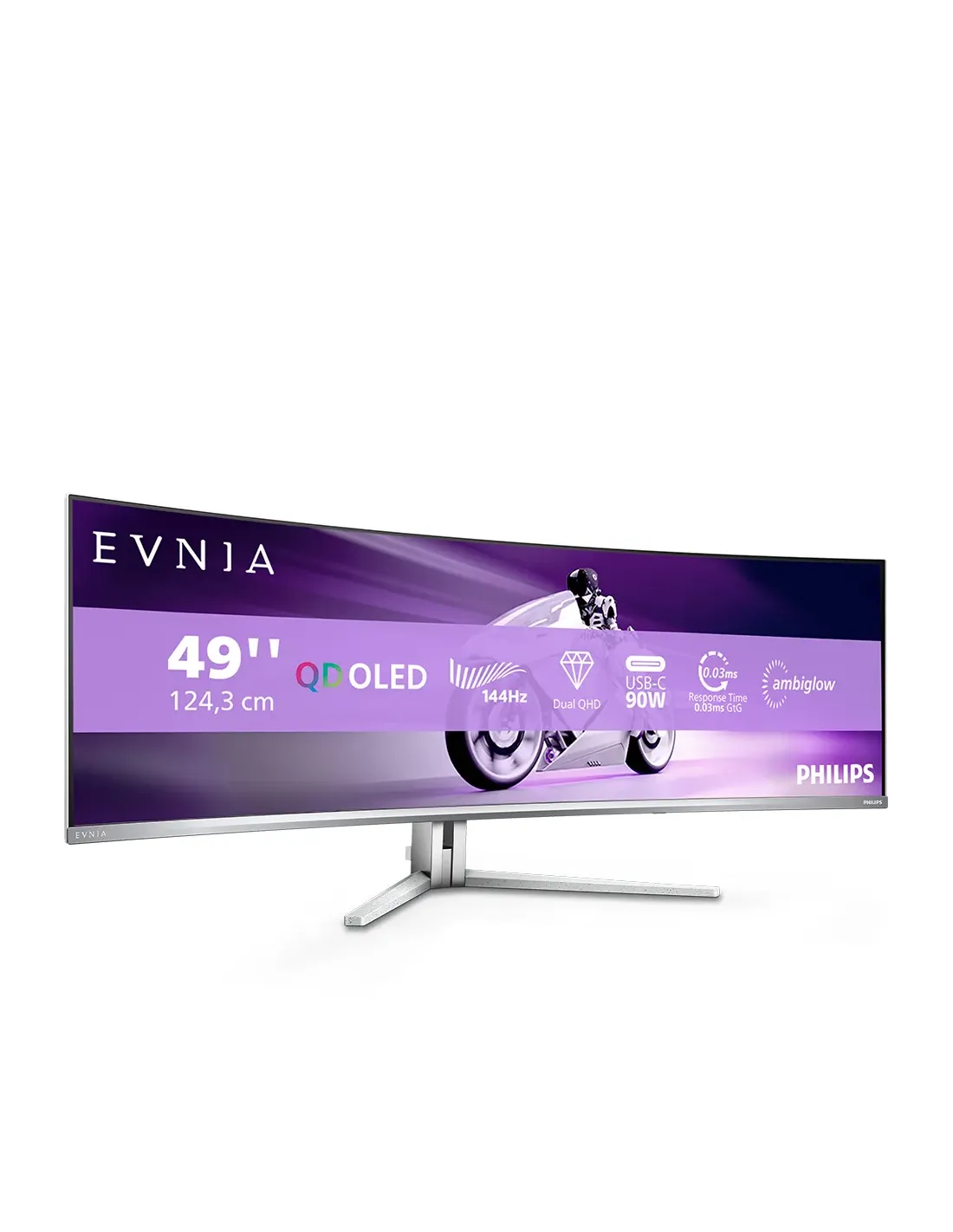 Philips Evnia 8000 49M2C8900L/00, 124,2 cm (48.9"), 5120 x 1440 Pixeles, Dual QHD, QD-OLED, 0,03 ms, Blanco