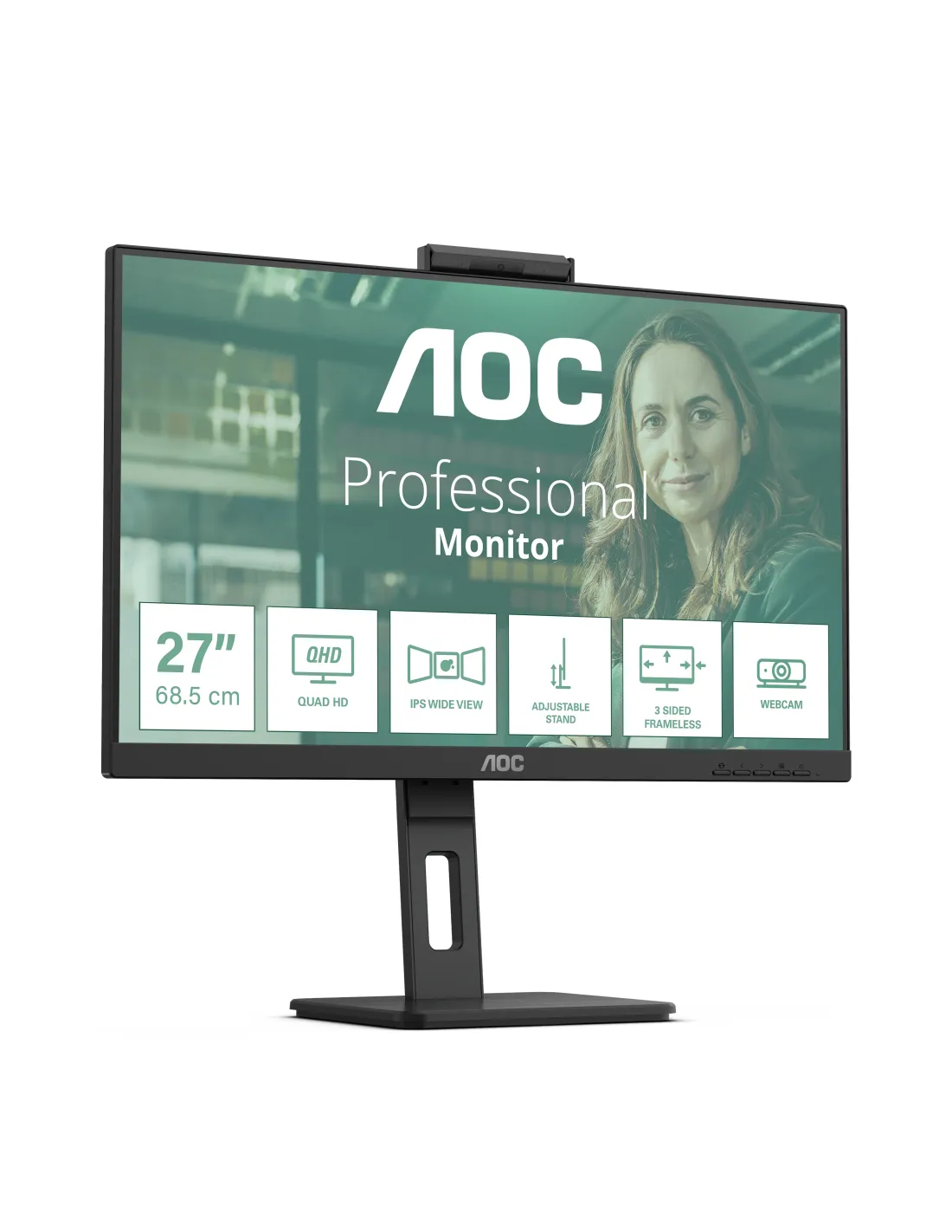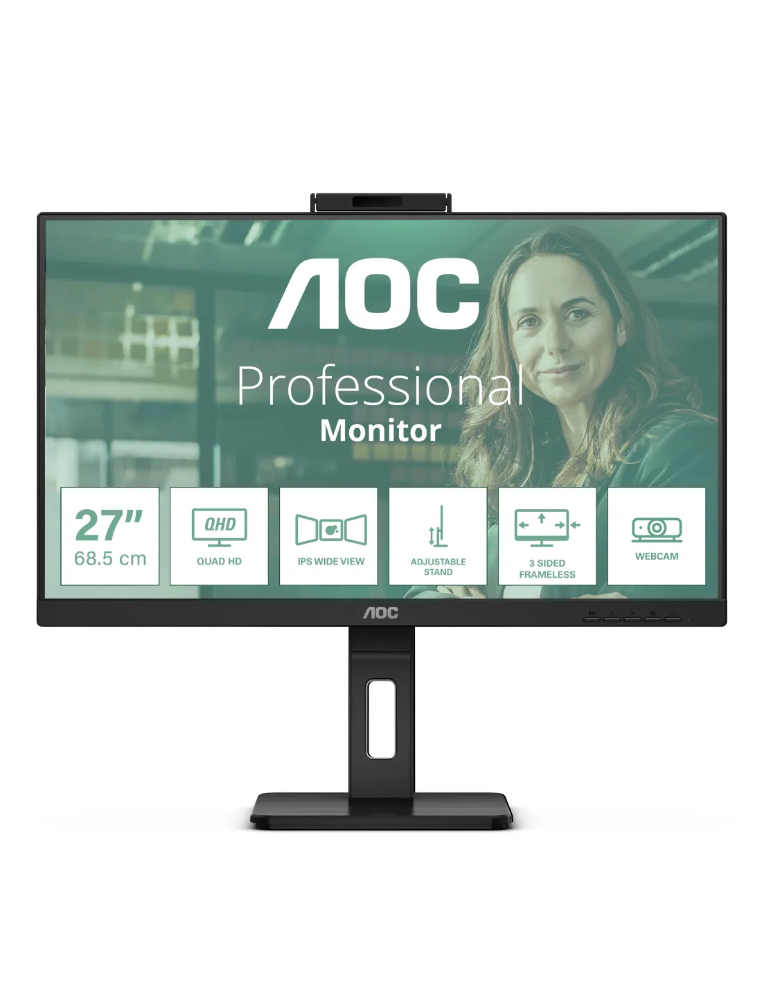 Monitor Profesional AOC Q27P3QW 27"/ QHD/ Webcam/ Multimedia/ Regulable en altura/ Negro
