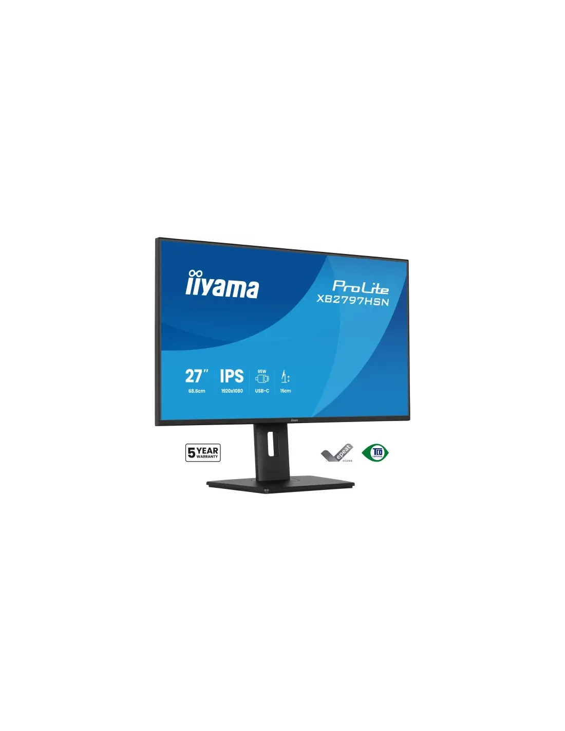 iiyama ProLite XB2797HSN-B1. Diagonal de la pantalla: 68,6 cm (27"), Resolución de la pantalla: 1920 x 1080 Pixeles, Tipo HD: Full HD, Superficie de la pantalla: Mate, Relación de aspecto nativa: 16:9, Ángulo de visión, horizontal: 178°, Ángulo de visión, vertical: 178°. Altavoces incorporados. Conector USB incorporado, Versión de conector USB: 3.2 Gen 1 (3.1 Gen 1). montaje VESA, Ajustes de altura. Color del producto: Negro