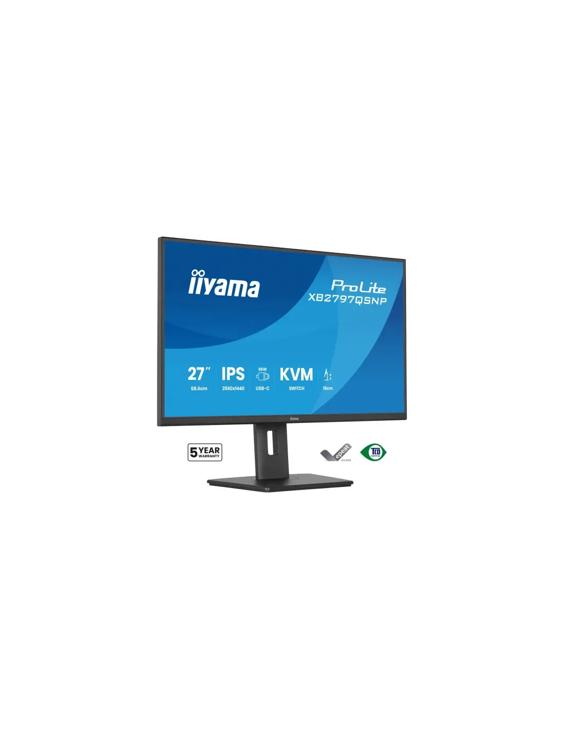 iiyama ProLite XB2797QSNP-B1. Diagonal de la pantalla: 68,6 cm (27"), Resolución de la pantalla: 2560 x 1440 Pixeles, Tipo HD: Quad HD, Superficie de la pantalla: Mate, Relación de aspecto nativa: 16:9, Ángulo de visión, horizontal: 178°, Ángulo de visión, vertical: 178°. Altavoces incorporados. Conector USB incorporado, Versión de conector USB: 3.2 Gen 1 (3.1 Gen 1). montaje VESA, Ajustes de altura. Color del producto: Negro