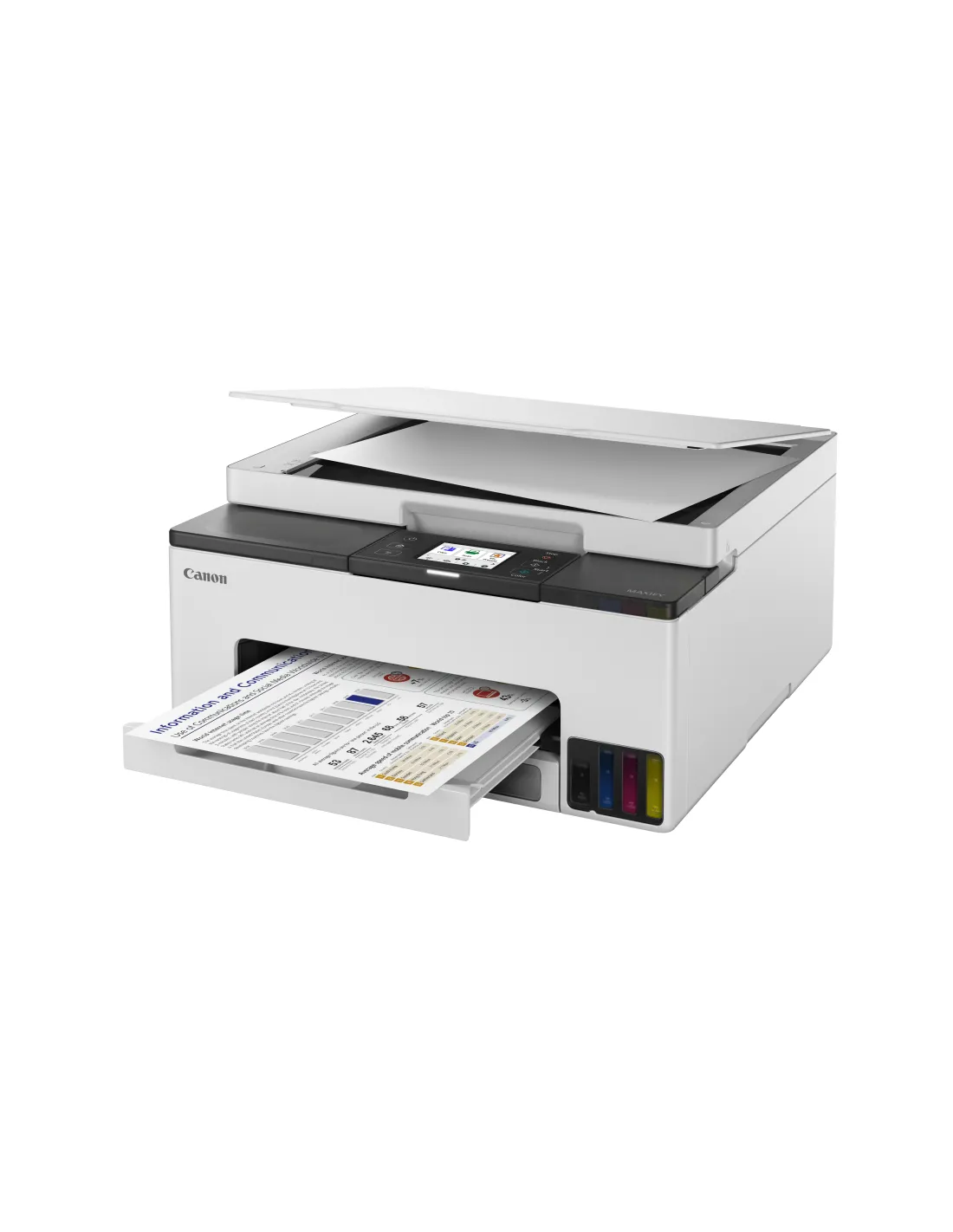 Canon MAXIFY GX1050. Tecnología de impresión: Inyección de tinta, Impresión: Impresión a color, Resolución máxima: 600 x 1200 DPI. Copiando: Copia a color. Escaneando: Escaneo a color, Resolución óptica de escáner: 1200 x 2400 DPI. Funciones dúplex: Imprimir. Tamaño máximo de papel ISO A-series: A4. Wifi. Color del producto: Negro, Blanco