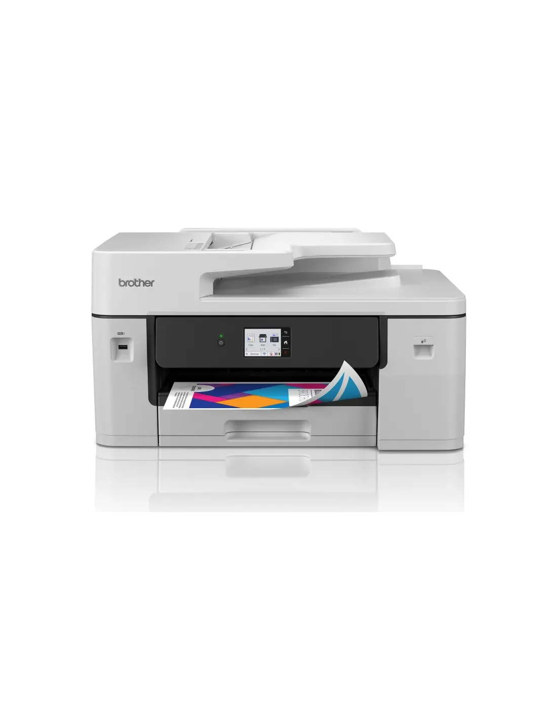 Marca Brother Modelo MFCJ6760DWRE1 Impresión - Tecnología de impresión por inyección de tinta - Resolución de impresión: hasta 1.200 x 4.800 ppp - Velocidad de impresión A4 a 1 cara: 31 ppm monocromo, 30 ppm color - Velocidad de impresión A4 a doble cara: 22 ppm monocromo, 21 ppm color - Tiempo de primera página: 4,4 s monocromo, 4,6 s color - Impresión a doble cara automática - Impresión móvil - Modo silencioso - Ciclo de trabajo: hasta 2.500 páginas - Funciones de impresión: N en 1, póster, marca de agua, ID, folletos, perfiles, reflejada, inversa, mejora del color, sin bordes Copia - Velocidad de copia A4 a 1 cara: 25 ipm monocromo, 16 ipm color - Velocidad de copia A4 a doble cara: 18 ipm monocromo, 13 ipm color - Resolución de copia: hasta 1.200 x 4.800 ppp - FCOT: 5,0 s monocromo, 6,0 s color - Funciones de copia: copia múltiple, apilar, clasificar, ampliación y reducción, copia ID, copia N en 1 Escáner - Tipo de escáner: Dual CIS (sensor de imagen de contacto) - Resolución de escaneo: hasta 1.200 x 2.400 ppp (interpolada hasta 19.200 x 19.200 ppp) - Velocidad de escaneo A4 a 1 cara: 25 ppm monocromo y color - Velocidad de escaneo A4 a doble cara: 30 ppm monocromo y color - Velocidad de escaneo A3 a 1 cara: 13 ipm monocromo y color - Velocidad de escaneo A3 a doble cara: 17 ipm monocromo y color - Funciones de escaneado: USB, email, red, FTP, OCR, archivo, imagen - Formatos soportados: PDF, JPEG, TIFF Manejo del papel Tamaño del papel - Tamaño máximo: A3 - Bandeja estándar: A4, A3, LTR, LGL, A5, A6, sobres, formatos fotográficos - Ranura manual: A4, A3, LTR, LGL, A5, A6, sobres, formatos fotográficos - Dúplex automático: A4, A3, LTR, LGL, A5, Folio Gramaje del papel - Bandeja estándar y manual: de 64 a 220 g/m2 - ADF y dúplex: de 64 a 120 g/m2 - Entrada de papel: 250 hojas bandeja principal, 1 hoja manual, 50 hojas ADF - Salida de papel: 100 hojas A4, 50 hojas A3 Otras Características Consumo de energía - Impresión: 27,0 W - Copia: 31,0 W - Preparado: 5,5 W - Reposo: 0,9 W - Apagado: 0,03 W Medio Ambiente - Certificaciones: Blue Angel, Nordic Swan Red - Gigabit Ethernet 10/100/1000 - Wi-Fi 2,4 GHz y 5 GHz - Wi-Fi Direct - Protocolos de seguridad avanzados SSL/TLS, WPA2, WPA3, IPsec, 802.1X Sistemas operativos - Windows 11 - macOS (v11 o superior mediante AirPrint) - ChromeOS Software - Brother iPrint&Scan (Windows) - Brother iPrint&Scan Desktop (macOS) - Utilidades y Easy Setup Funciones de seguridad - Control de acceso IEEE 802.1X - Impresión segura en la nube - Secure Boot - Firmware firmado y cifrado - Gestión de certificados Dimensiones y pesos - 576 x 477 x 305 mm - 20,2 kg Consumibles - Cartuchos BK, C, M, Y (series LC527 y LC528 con distintos rendimientos) Fecha Revisión 20-01-2026 por IS