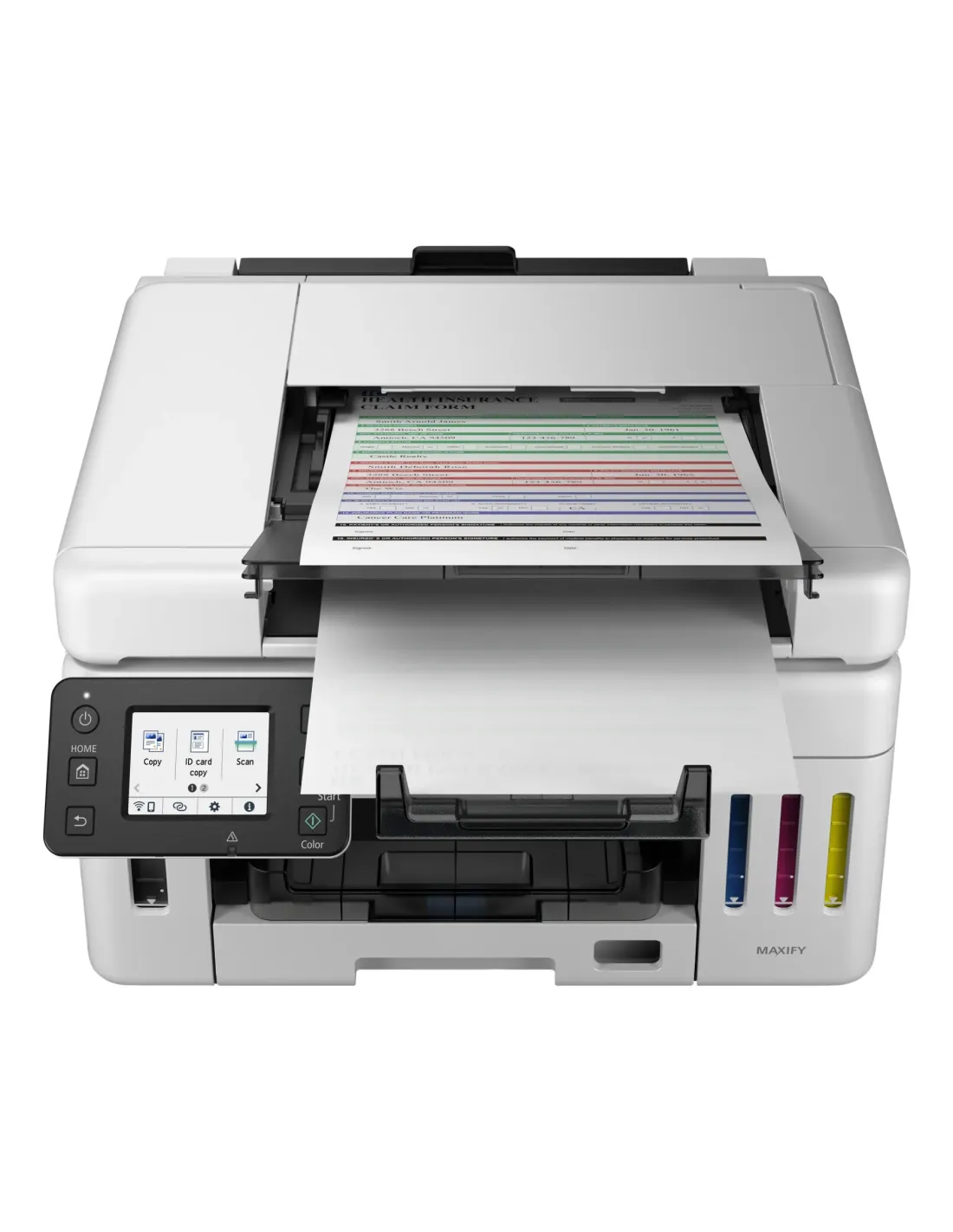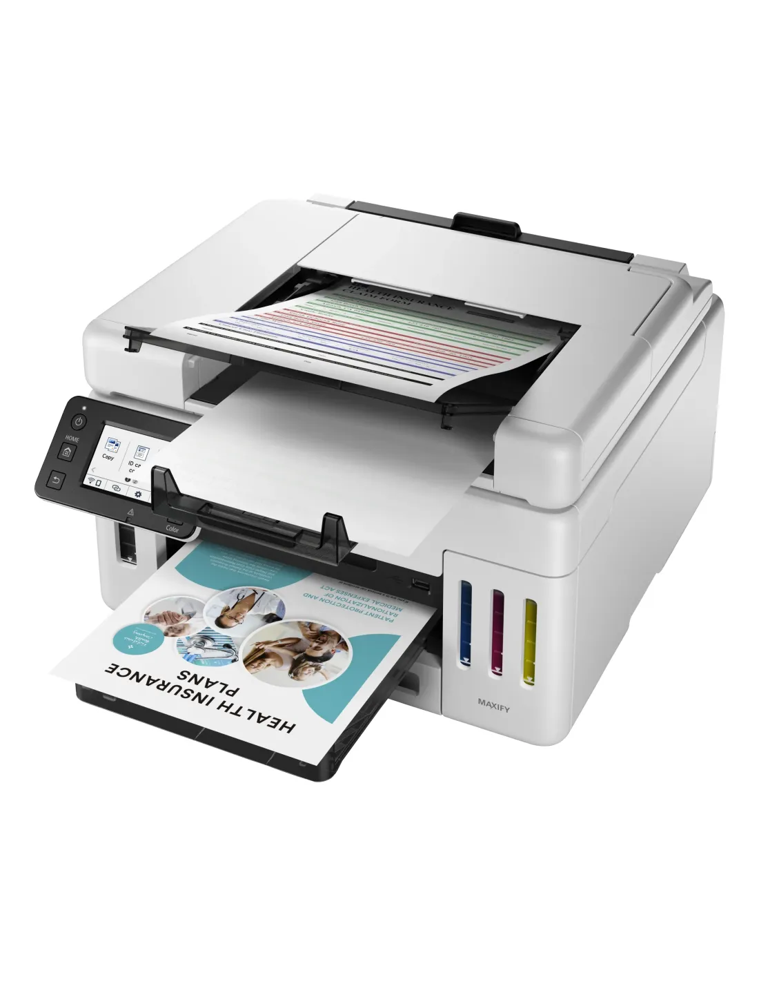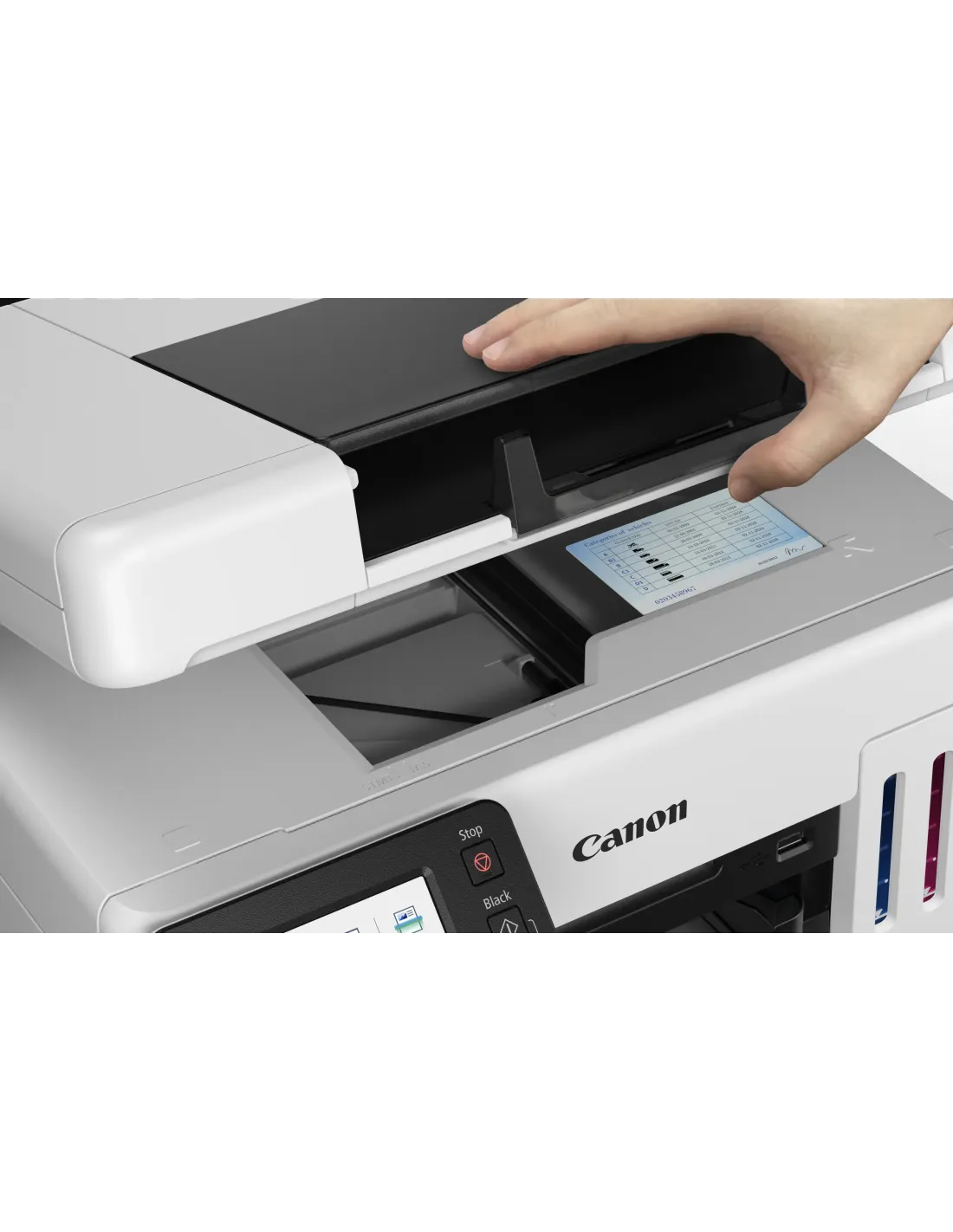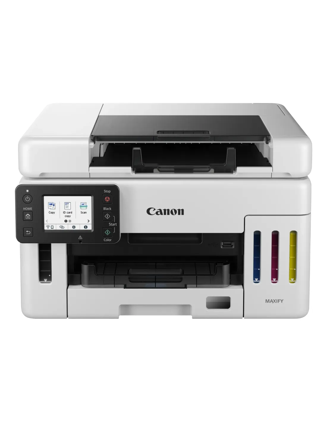 Canon MAXIFY GX6550. Tecnología de impresión: Inyección de tinta, Impresión: Impresión a color, Resolución máxima: 600 x 1200 DPI. Copiando: Copia a color. Escaneando: Escaneo a color, Resolución óptica de escáner: 1200 x 1200 DPI. Funciones dúplex: Copiar, Imprimir. Tamaño máximo de papel ISO A-series: A4. Wifi. Color del producto: Negro, Blanco