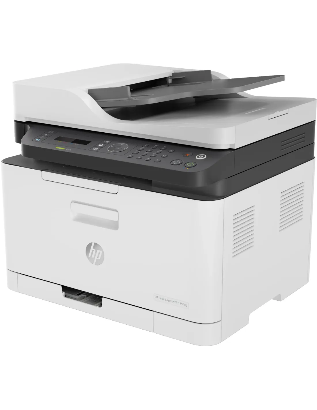 Características de la HP Color Laser MFP 179fnw Multifunción Láser Color WiFiLa HP Color Laser MFP 179fnw es una impresora multifunción láser en color diseñada para entornos domésticos y pequeñas oficinas que buscan eficiencia, conectividad y calidad profesional en un solo equipo. Gracias a su conectividad inalámbrica, funciones integradas de impresión, copia, escaneo y fax, y un diseño compacto, se convierte en una solución versátil y completa para el día a día.Rendimiento fiable para el uso diarioEste equipo ofrece una combinación ideal entre velocidad y calidad para documentos en blanco y negro o color. Con un volumen mensual recomendado de hasta 500 páginas, es perfecta para usuarios con necesidades moderadas de impresión sin sacrificar precisión.Velocidad de impresión: hasta 18 ppm (mono) / 4 ppm (color)Resolución máxima: hasta 600 x 600 ppp en impresión y copiaCiclo de trabajo mensual: hasta 20.000 páginasConectividad inalámbrica y móvilLa HP 179fnw se integra fácilmente en cualquier entorno gracias a sus opciones de conexión flexibles. Imprime desde cualquier lugar mediante Wi-Fi, dispositivos móviles o directamente a través de la red.Wi-Fi(n), USB 2.0 y LAN integradosCompatibilidad con AirPrint, Google Cloud Print y MopriaImpresión directa inalámbrica y escaneo a PCFunciones 4 en 1 para mayor productividadEste modelo combina en un solo dispositivo las funciones de impresora, copiadora, escáner y fax, optimizando espacio y recursos. Además, su alimentador automático permite digitalizar varias hojas de forma rápida.Capacidad del ADF: 40 hojasEscaneado a 600 x 600 pppFax con velocidad de transmisión de hasta 33.6 KbpsDiseño compacto y preparado para todo tipo de soportesPensada para ocupar poco espacio, la HP 179fnw también destaca por su versatilidad de formatos de papel, aceptando desde etiquetas hasta papel satinado, lo que la hace ideal para tareas diversas.Capacidad de entrada: 150 hojasCapacidad de salida: 50 hojasTamaño de medios: de 76 x 148.5 mm hasta 216 x 356 mmCompacta pero potenteSu diseño compacto la hace ideal para espacios reducidos, sin renunciar a la robustez y durabilidad de un equipo profesional.Dimensiones: 40.6 cm x 36.3 cm x 34.41 cmPeso: 14.08 kgAlimentación: CA 230 V (50/60 Hz)Otras especificacionesTipo de original: hojas sueltasResoluciones de fax: hasta 300 x 300 pppIdioma de interfaz: inglés, alemán, francés, italiano, español