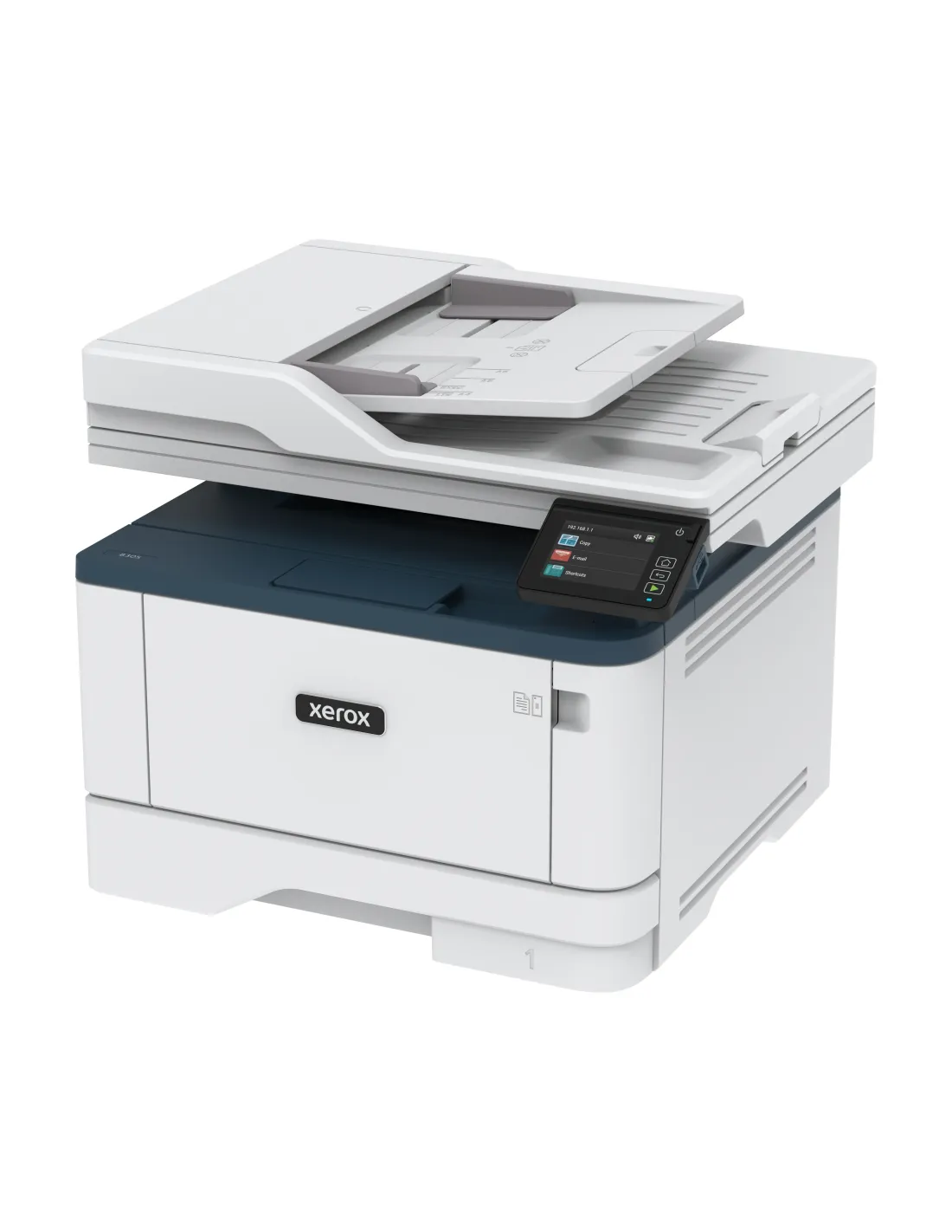 Características de la Xerox B305V_DNI Multifunción Láser Monocromo A4La **impresora multifunción Xerox B305V_DNI** está diseñada para entornos de trabajo que requieren **fiabilidad, velocidad y conectividad avanzada**. Ideal para pequeñas y medianas empresas, combina funciones de impresión, copia y escaneado en un solo dispositivo compacto, con una velocidad de hasta **38 ppm** y conectividad por **Wi-Fi, red LAN y USB**. Su compatibilidad con **AirPrint** y su sistema de **impresión a doble cara automática** hacen que la eficiencia sea parte de su ADN.Rendimiento profesional en cada tareaLa Xerox B305V_DNI ofrece una respuesta rápida y constante, incluso bajo demandas altas de impresión. Con una capacidad mensual recomendada de hasta 6.000 páginas y un ciclo máximo de 80.000 páginas, esta multifunción está preparada para acompañarte en el ritmo diario de tu negocio.Velocidad de impresión y copia: hasta 38 ppmResolución máxima de impresión: 600 x 600 pppVolumen mensual recomendado: hasta 6.000 páginasConectividad total y funciones inteligentesGracias a su amplia variedad de conexiones, la B305V_DNI se adapta a todo tipo de entornos de trabajo. Incluye USB 2.0, red LAN y Wi-Fi, y está lista para AirPrint, facilitando la impresión desde dispositivos Apple sin configuración adicional. Además, cuenta con un conjunto de herramientas de productividad como escaneado a correo, carpetas compartidas, FTP o unidad USB.Interfaz: USB 2.0, LAN, Wi-Fi(n)Compatible con Apple AirPrintFunciones de escaneo avanzadas: escaneo a email, FTP, USB y redEscaneado eficiente y alimentador automáticoEscanea documentos de forma rápida y precisa gracias a su resolución de 600 x 600 ppp y a su alimentador automático de documentos (ADF) para 50 hojas. Permite digitalizar desde originales en hoja suelta hasta tamaño Legal (216 x 356 mm).Escáner con ADF de 50 hojasÁrea escaneable máxima: Legal (216 x 356 mm)Resolución de escaneo: 600 x 600 pppCapacidad de papel y manejo versátil de soportesEquipada para adaptarse a diferentes necesidades de papel, esta multifunción acepta una gran variedad de tipos y gramajes. Su capacidad de entrada de hasta 900 hojas (incluyendo bandeja bypass) garantiza menos interrupciones durante la jornada.Capacidad de papel: hasta 900 hojas (350 estándar + 100 bypass)Salida de papel: 100 hojasAdmite: sobres, etiquetas, papel reciclado, papel bond, papel satinado y másDiseño compacto y eficiencia energéticaA pesar de su robustez, su formato es ideal para espacios reducidos. Está certificada con los estándares medioambientales ENERGY STAR y Blue Angel, lo que garantiza un consumo optimizado y compromiso con la sostenibilidad.Dimensiones: 41,1 x 26,6 x 33,9 cmPeso: 12,8 kgCertificaciones: ENERGY STAR, Blue AngelOtras especificacionesTipo de dispositivo: Impresora multifunción láser monocromoTamaño máximo de papel: A4 / LegalImpresión a doble cara automática: SíAlimentación: CA 230 V (50/60 Hz)Programa de devolución: Xerox Green World Alliance