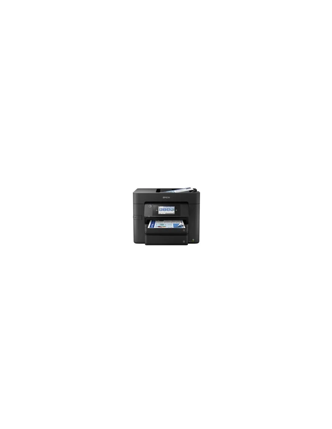 Características de la Multifunción Epson WorkForce Pro WF-4830DTWFLa **Epson WorkForce Pro WF-4830DTWF** es una multifunción de inyección a color diseñada para **oficinas en casa y pequeñas empresas** que necesitan alta productividad, bajo coste por página y una conectividad versátil. Con **impresión rápida**, **escaneado a doble cara**, **fax**, dos bandejas de papel de gran capacidad y tecnología PrecisionCore?, ofrece un flujo de trabajo profesional con un mantenimiento mínimo.Rendimiento de impresión profesionalLa WF-4830DTWF destaca por su **alta velocidad** y calidad de impresión. Su cabezal PrecisionCore? y las tintas pigmentadas DURABrite? Ultra garantizan textos nítidos y colores duraderos. La impresión dúplex automática y el bajo tiempo de salida de la primera página la convierten en una opción excelente para entornos exigentes.Velocidad ISO: **25 ppm monocromo** y **12 ppm color**Salida primera página: **5,5 s en mono** y **8,5 s en color**Resolución máxima: **4.800 x 2.400 ppp**Impresión dúplex: **16 ppm mono** y **9 ppm color**Ciclo de trabajo: **33.000 páginas/mes** (recomendado: 200 - 1.700)Escaneado rápido con ADF a doble caraEquipada con un alimentador automático de documentos de **50 hojas**, esta multifunción permite digitalizar documentos a doble cara de forma eficiente. Su sensor CIS ofrece una gran precisión, ideal para archivos y gestión documental.Escaneado a doble cara (ADF)Velocidad ADF: **16,5 ipm** en mono y colorResolución de escaneado: **1.200 x 2.400 ppp**Formatos de salida: BMP, JPEG, TIFF, TIFF múltiple, PDF, PNGConectividad completa para entornos modernosLa WF-4830DTWF integra una amplia gama de conexiones para adaptarse a cualquier entorno de trabajo: cableado, inalámbrico o desde dispositivos móviles. Además, incluye **Wi-Fi Direct** y compatibilidad con servicios en la nube para imprimir desde cualquier lugar.WiFi 4 (802.11b/g/n), Ethernet y USB 2.0Wi-Fi Direct y NFCCompatibilidad: **Apple AirPrint, Mopria, Epson Connect**Protocolos de red: IPv4/IPv6, LDP, IPPS, WSD, entre otrosDiseño productivo y gran capacidad de papelCreada para gestionar grandes volúmenes, esta multifunción incorpora **dos bandejas de 250 hojas** cada una, ofreciendo hasta 500 hojas de capacidad total. Además, permite una amplia variedad de formatos, incluidos sobres y tamaños fotográficos.Capacidad total: **500 hojas**Bandeja de salida: **80 hojas**Formatos compatibles: A4, A5, A6, B5, DL, C6, 10x15 cm, 13x18 cm, Legal, Carta y másPeso del papel: **65 - 255 g/m²**Pantalla táctil e interfaz intuitivaSu pantalla LCD táctil de **10,9 cm** permite un control claro y sencillo de todas las funciones. Diseñada para uso frecuente, facilita la navegación por los menús, ajustes y opciones de conectividad.Pantalla táctil a colorDiámetro: **10,9 cm**Fácil acceso a funciones de copia, escaneo, fax e impresiónEficiencia energética y compatibilidad ampliadaUna impresora empresarial que combina buen rendimiento con bajo consumo. Además, es compatible con una amplia gama de sistemas operativos, tanto Windows como macOS.Consumo: 8,6 W en espera, 22 W copiando, 1,2 W en modo ahorroVoltaje: 100 - 240 VCompatibilidad: Windows XP a Windows 10, macOS 10.6.8 o posteriorNúmero recomendado de usuarios: **1 a 4**Otras especificacionesDimensiones: 425 x 388 x 330 mmPeso: 11,9 kgTecnología de tinta: DURABrite? Ultra (negro, cian, magenta y amarillo, todas pigmentadas)Alimentación: AC 100 V - 240 VFax integradoEmulaciones: ESC/P-RAvisos de seguridad incluidos en la formulación de tintas