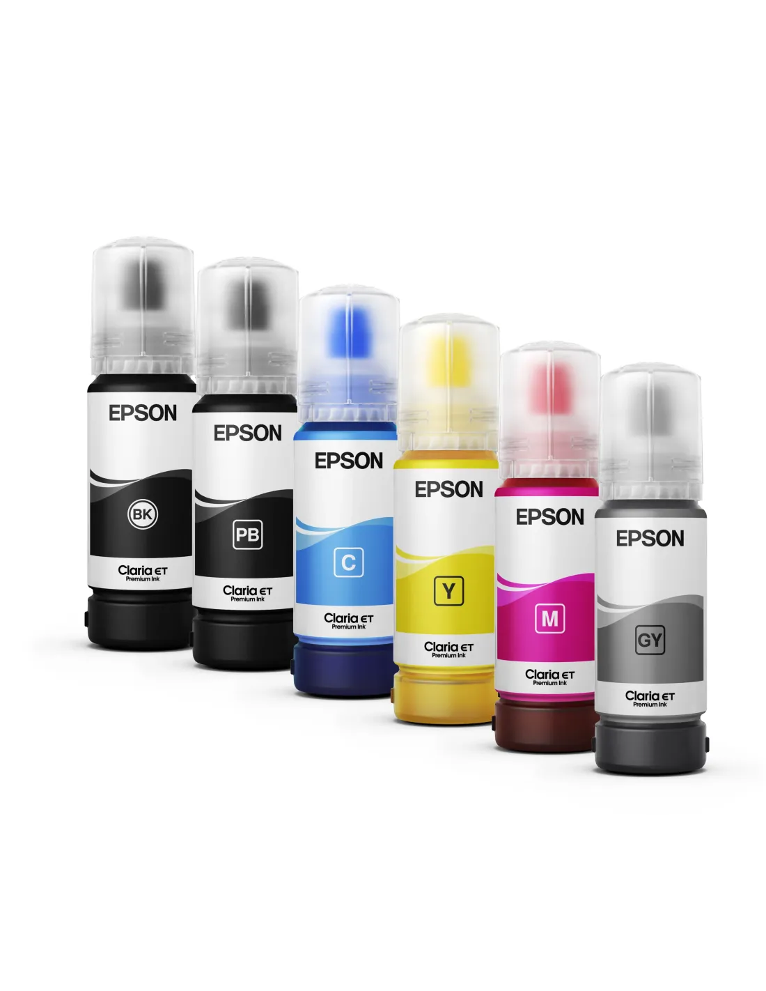 Marca Epson Modelo C11CJ20401 Tecnología - Método de impresión: Impresora de inyección de tinta de 6 colores - Configuración inyectores: 360 Inyectores negro, 180 Inyectores por color - Tamaño máximo gota: 1,5 pl, Con tecnología de gotas de tinta de tamaño variable - Resolución de impresión: 5.760 x 1.440 ppp - Categoría: Consumo individual, Foto - Multifunción: Impresión, Escanear, Copia Impresión - Velocidad de impresión ISO/IEC 24734: 16 páginas/minuto Monocromo, 12 páginas/minuto Color - Velocidad de impresión: 32 páginas/minuto Monocromo (Papel Normal 75 g/m²) 32 páginas/minuto Color (Papel Normal 75 g/m²) 25 segundos por foto de 10 x 15 cm (Epson Premium Glossy Photo Paper) - Colores: Negro, Negro foto, Cian, Amarillo, Magenta, Gris Escaneado - Resolución de escaneado: 1.200 ppp x 4.800 ppp (horizontal × vertical) - Formatos de salida: BMP, JPEG, TIFF, TIFF múltiple, PDF, PDF con opción de búsqueda, PNG - Tipo de escáner: Sensor de imagen de contacto (CIS) Manejo de papel y sustratos - Número de bandejas de papel: 3 - Formatos papel: A4 (21.0x29,7 cm), A5 (14,8x21,0 cm), A6 (10,5x14,8 cm), B5 (17,6x25,7 cm), B6 (12,5x17,6 cm), C6 (sobre), DL (sobre), No. 10 (sobre), Carta, 10 x 15 cm, 13 x 18 cm, 100 x 148 mm, Personalizado - Dúplex: Sí (papel normal A4) - Recorrido del papel posterior (soportes especiales) - Gestión de soportes: Doble cara automática (papel normal A4), Impresión sin márgenes, Impresión en CD/DVD, Recorrido para Fine Art Paper, Alimentación trasera para soportes especiales, Bandeja para soportes gruesos General - Pantalla LCD: Tipo: Color, Pantalla táctil, Diagonal: 10,9 cm Alimentación - Consumo de energía: 17 vatio (copia autónoma, norma ISO/IEC 24712), 0,8 vatio (modo de ahorro), 7,5 vatio Preparado, 0,3 vatio (desconectar), TEC 0,16 kWh por semana - Voltaje de suministro: CA 220 V - 240 V, 50 Hz - 60 Hz Entorno y dimensiones - Dimensiones del producto: 403 x 369 x 162 mm (ancho x profundidad x altura) - Peso: 8,4 kg - Nivel de ruido: 5 B (A) con Epson Premium Glossy Photo Paper / modo Photo RPM. 37 dB (A) con Epson Premium Glossy Photo Paper / modo Photo RPM. Compatibilidades - Sistemas operativos compatibles: Mac OS X 10.6.8 or later, Windows 10 (32/64 bit), Windows 7 (32/64 bit), Windows 8 (32/64 bits), Windows 8.1 (32/64 bit), Windows Vista (32/64 bits), Windows XP Professional x64 Edition SP2 or later, Windows XP SP3 or later (32-bit), - Software incluido: Epson Photo+, Epson ScanSmart, EpsonNet Config - Interfaces: USB, Ethernet, LAN IEEE 802.11a/b/g/n/ac (WiFi 5) inalámbrica, Wi-Fi Direct, Host USB, SD Card Slot - Servicios de impresión móvil y en la nube: Apple AirPrint Incluye - Cable de CA - Juego de tintas - Guía rápida Fecha Revisión 07-04-2021 por MPM