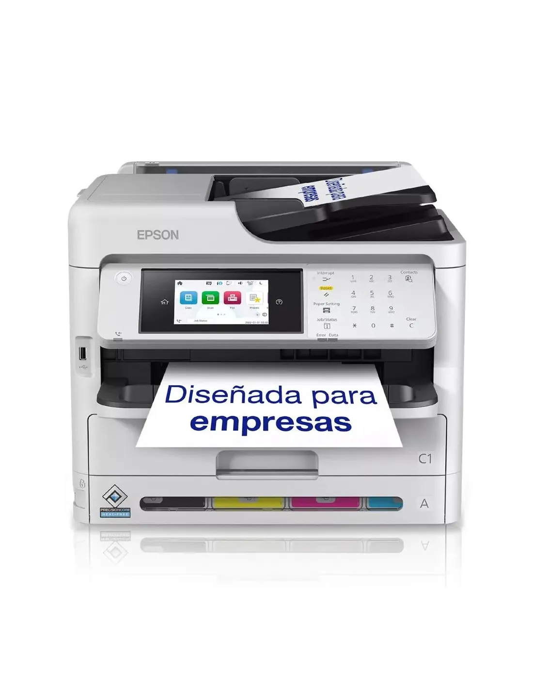 Reduzca los costes de impresión de su empresa y el impacto medioambiental, al tiempo que aumenta la productividad con menos intervenciones y mayor seguridad.Una impresora para grupos de trabajo pequeños perfecta para el entorno empresarial, desde pequeñas oficinas hasta grandes corporaciones. Ideal para quienes tradicionalmente han utilizado láser y desean reducir costes, aumentar la productividad y reducir el tiempo de inactividad, al tiempo que reducen su impacto medioambiental y mejoran su reputación de RSC.Descripción del producto Epson WorkForce Pro WF-C5890DWF - impresora multifunción - colorDimensiones (Ancho x Profundidad x Altura) 42.5 cm x 53.5 cm x 35.7 cmPeso 18.7 kgTipo de soporte Sobres, papel normal, papel reciclado, papel fotográfico brillante, papel coloreado, papel con membreteAlimentación CA 230 V (50/60Hz)Tipo de dispositivo Impresora multifunciónTamaño soporte 64 x 127 mm (mínimo) - 216 x 60000 mm (máx.)Tipo de fax Super G3 - papel normalTecnología de impresión Chorro de tinta (color)Ciclo mensual de servicio (máx.) 75000 páginasResolución máxima de copia Hasta 600 x 1200 ppp (mono) / hasta 600 x 1200 ppp (color)Velocidad máxima de impresión Hasta 25 ppm (mono) / hasta 25 ppm (color)Resolución máxima de impresión Hasta 4.800 x 1.200 ppp (mono) / hasta 4.800 x 1.200 ppp (color)Velocidad máxima de transmisión de fax 33.6 KbpsExploración 1.200 x 2.400 pppTipo de original HojasCapacidad del alimentador de documentos 50 hojasCapacidad estándar de papel 330 hojasCapacidad de las bandejas de salida 150 hojasCapacidad máxima de papel 1830 hojasCapacidad del alimentador con derivación 80 hojasInterfaz USB 2.0, Gigabit LAN, Wi-Fi(n), NFC, host USB 2.0Tecnología de inyección de tinta Epson PrecisionCore Heat-Free - 4 tintasFunciones de máquina de oficina Imprimir desde unidad flash USB, de escáner a correo electrónico, buscar en la Nube, escanear a FTP, escaneo a PC, escaneo a carpetaVolumen mensual recomendado 250 - 5000 pagesImpresión a dos caras automático Sí (copiando) Sí (impresión) Sí (scanning)Preparado para AirPrint SíClase de resolución de impresión máx. Hasta 4.800 x 1.200 ppp (mono) / hasta 4.800 x 1.200 ppp (color)Clase de resolución de copia máx. Hasta 600 x 1200 ppp (mono) / hasta 600 x 1200 ppp (color)Disponibilidad de conexión Sí