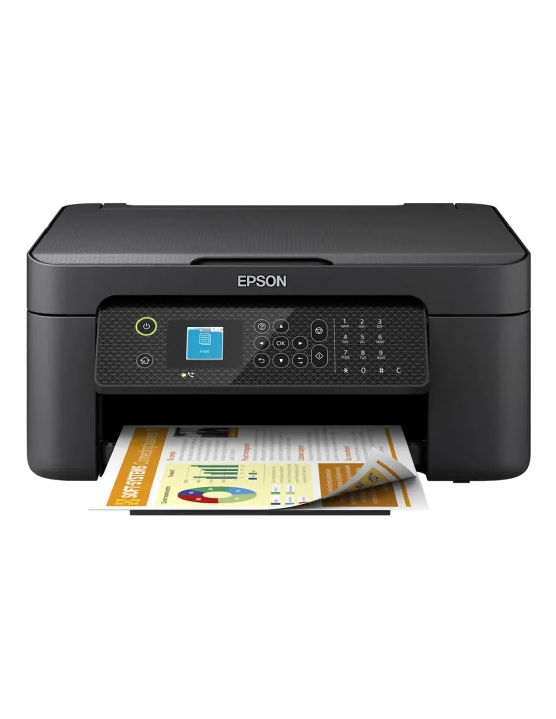 Características de la Epson Workforce WF-2910DWF Multifunción Color WiFi con Dúplex y FaxLa **Epson Workforce WF-2910DWF** es una impresora multifunción de inyección de tinta diseñada para **entornos de trabajo doméstico o pequeñas oficinas** que necesitan una solución compacta, eficiente y conectada. Con funciones de **impresión, escaneado, copia y fax**, ofrece una excelente relación calidad-precio para tareas cotidianas. Además, su conectividad WiFi, la impresión a doble cara y las apps compatibles la convierten en una herramienta versátil y moderna.Multifunción completa para el día a díaEste modelo ofrece funcionalidades esenciales en un solo dispositivo compacto, ideal para espacios reducidos. Ya sea imprimir documentos, escanear contratos, enviar faxes o hacer copias rápidas, la WF-2910DWF está preparada para trabajar contigo.Funciones: Impresión, escaneado, copia y faxVelocidad ISO: Hasta 10 ppm en monocromo / 5 ppm en colorResolución de impresión: Hasta 5.760 x 1.440 pppImpresión eficiente con inyección de tinta de 4 coloresGracias a su tecnología de tinta **Pigment Black y Dye Colour**, esta impresora ofrece textos nítidos y colores vivos tanto en documentos como en fotos. La impresión sin bordes está disponible hasta tamaño 10x15 cm.Inyectores: 180 para negro, 59 por colorTamaño de gota mínimo: 3 plCompatibilidad con papeles de hasta 300 g/m²Escaneado de alta resoluciónEscanea documentos en detalle con su sensor CIS, ideal para digitalizar archivos con calidad. Su tamaño máximo de escaneado es DIN A4.Resolución: 1.200 x 2.400 pppVelocidad: 2,2 ms/línea en B/N y 7 ms/línea en colorTamaño máximo: 216 x 297 mmFunción de fax integradaIncluye múltiples funciones de fax avanzadas que te permiten enviar y recibir documentos con rapidez y fiabilidad. Compatible con faxes en blanco y negro o color, cuenta con marcación rápida y libreta de direcciones.100 entradas de marcación rápidaMemoria para hasta 100 páginasEnvío desde PC, recepción, polling, difusión, etc.Conectividad inalámbrica y servicios en la nubeImprime desde cualquier lugar gracias a su conectividad WiFi y compatibilidad con servicios móviles. Perfecta para oficinas modernas o usuarios que necesitan impresión remota.Wi-Fi 4 (802.11 b/g/n) y Wi-Fi DirectCompatible con Apple AirPrint, Mopria, Epson ConnectApp Epson Smart Panel para gestión desde el móvilManejo versátil de papelAdmite diferentes formatos y tipos de papel, desde A4 hasta sobres o fotografías. La función dúplex automática permite ahorrar papel de forma sencilla.Impresión a doble cara automática (A4)Bandeja: hasta 100 hojas estándar / 20 fotográficasFormatos: A4, A5, A6, B5, sobres, fotos 10x15 cm, entre otrosPantalla a color y diseño compactoFácil de manejar gracias a su pantalla LCD a color de 3,7 cm. Su diseño ligero y compacto se adapta sin problema a escritorios pequeños.Pantalla: LCD color de 3,7 cmDimensiones: 375 x 300 x 170 mmPeso: 4,4 kgCompatibilidad y eficiencia energéticaCompatible con una amplia gama de sistemas operativos, la WF-2910DWF consume poca energía y se adapta a entornos profesionales exigentes.Compatible con Windows, MacOS y servidores WindowsConsumo: desde 0,2 W (modo apagado) hasta 12 W (copia)Nivel de ruido: 37 dB(A)Otras especificacionesCiclo de trabajo mensual: Hasta 3.000 páginasSeguridad WLAN: WPA2, WPA3, WEP 64/128 bitsSoftware incluido: Epson Event Manager, Fax Utility, Photo+, ScanSmart