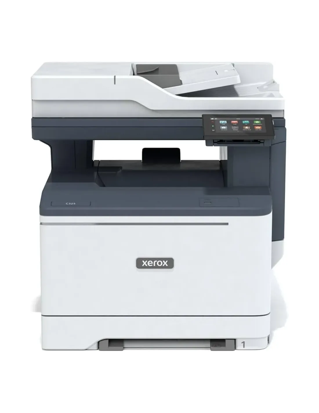 Características de la Multifunción Xerox C325V_DNI Color A4La Xerox C325V_DNI es una impresora multifunción láser color profesional, diseñada para entornos de trabajo exigentes que requieren alto rendimiento, calidad de impresión y conectividad versátil. Con velocidades de hasta 33 ppm tanto en color como en monocromo, funciones de escaneo, copia y fax integradas, y un ciclo mensual de hasta 65.000 páginas, es ideal para oficinas de tamaño medio o grupos de trabajo que necesitan fiabilidad y eficiencia.Rendimiento láser profesional en colorGracias a su tecnología láser de alta precisión, la Xerox C325V_DNI ofrece impresiones y copias con calidad profesional. Su resolución de hasta 1200 x 1200 ppp garantiza textos nítidos y gráficos detallados en cada página.Velocidad de impresión: hasta 33 ppm (mono y color)Resolución de impresión: hasta 1200 x 1200 pppVolumen mensual recomendado: hasta 6.000 páginasEscaneo, copia y fax integradosEste equipo multifunción no solo imprime, también copia, escanea y envía faxes con rapidez y fiabilidad. Con un alimentador de documentos de 50 hojas y escaneo hasta 600 x 600 ppp, facilita el flujo documental en oficinas con gran carga de trabajo.Escaneo a email, red, FTP y USBResolución de escaneo: hasta 600 x 600 pppFax Super G3 con velocidad de transmisión de 33.6 KbpsConectividad completa y funciones inteligentesLa Xerox C325V_DNI está equipada con Wi-Fi, Gigabit Ethernet y USB 2.0, permitiendo una integración flexible en cualquier entorno. Además, es compatible con AirPrint y cuenta con una pantalla táctil de 4,3" para una experiencia de usuario intuitiva.Conexión USB 2.0, Wi-Fi(n) y Gigabit LANPantalla táctil a color de 4,3"Compatible con AirPrintDiseño funcional y sostenibleCon una capacidad de entrada de hasta 250 hojas y salida para 200 hojas, esta impresora se adapta a los flujos de trabajo más exigentes. Además, incorpora funciones de ahorro como impresión a doble cara automática y modos de bajo consumo que cumplen con el estándar ENERGY STAR.Bandeja de entrada: 250 hojas + alimentador manual de 1 hojaImpresión a doble cara automáticaCertificación ENERGY STAROtras especificacionesCiclo mensual máximo: 65.000 páginasTipo de original: hojas sueltasTamaño máximo de papel: Legal / A4Tipos de papel soportado: normal, reciclado, satinado, membreteado, sobres, etiquetas, etc.Funciones avanzadas: escaneo con un toque, impresión N-up, rotar imagen, marca de agua, TPM (Trusted Platform Module)Alimentación: CA 230 V (50/60Hz)Dimensiones: 47,9 x 47,5 x 49,1 cmPeso: 27 kg