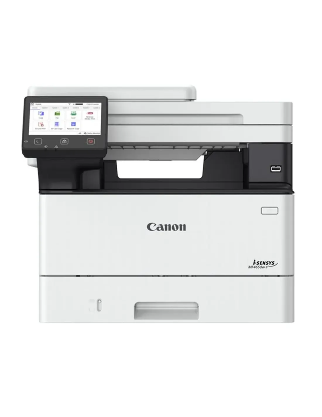Características de la Multifunción Láser Canon i-SENSYS MF465dw IILa Canon i-SENSYS MF465dw II es una impresora multifunción láser monocromo diseñada para entornos profesionales que requieren alta productividad, conectividad avanzada y máxima eficiencia. Con funciones de impresión, copia, escaneo y fax, ofrece un rendimiento rápido de hasta 40 ppm y una gestión documental completa, ideal para oficinas, pymes y grupos de trabajo con volumen medio-alto.Rendimiento rápido y calidad profesionalGracias a su motor láser de alto rendimiento, esta multifunción garantiza impresiones nítidas y rápidas, incluso en grandes volúmenes de trabajo. Su velocidad y baja latencia permiten optimizar los flujos de trabajo diarios.Hasta 40 ppm en impresión A4 y 33,6 ipm a doble caraResolución de impresión de hasta 1200 x 1200 pppPrimera impresión en solo 5 segundosTiempo de calentamiento de aproximadamente 14 segundosFunciones completas: impresión, copia, escaneo y faxIntegra todas las funciones clave en un solo equipo, facilitando la gestión documental con copias rápidas, escaneo avanzado y fax profesional. Su versatilidad la convierte en una solución todo en uno para cualquier oficina.Copia hasta 40 ppm con ampliación del 25 al 400%Escaneo a doble cara de una sola pasada hasta 100 ipmResolución de escaneo mejorada hasta 9600 x 9600 pppFax con memoria de hasta 512 páginas y 33,6 KbpsConectividad avanzada y trabajo en la nubePermite trabajar de forma flexible gracias a sus múltiples opciones de conexión y compatibilidad con servicios en la nube, facilitando la impresión y el escaneo desde distintos dispositivos.Conexión USB, red Gigabit Ethernet y WiFiImpresión desde la nube (Google Drive, Dropbox, OneDrive)Compatibilidad con AirPrint, Mopria y Canon PRINTMicrosoft Universal Print e impresión desde USBGestión de papel eficiente y automáticaDiseñada para entornos exigentes, ofrece gran capacidad de papel y automatización en doble cara, reduciendo la intervención del usuario y mejorando la productividad.Capacidad de entrada estándar de 350 hojas (ampliable a 900)ADF de 50 hojas con escaneo a doble cara en una sola pasadaImpresión automática a doble caraSalida de papel de hasta 150 hojasSeguridad y control empresarialIntegra avanzadas funciones de seguridad para proteger la información, ideal para entornos corporativos que requieren control de acceso y protección de datos.Impresión segura cifrada y protección mediante PINProtocolos de seguridad como TLS1.3, IPSec y WPA3Gestión por ID de departamentoCompatibilidad con SNMPv3 y filtrado de direcciones IP/MACDiseño funcional y fácil manejoSu diseño compacto y su pantalla táctil en color permiten un uso sencillo e intuitivo, facilitando la configuración y el acceso a todas sus funciones.Pantalla LCD táctil en color de 12,7 cmDimensiones: 420 x 460 x 375 mmPeso aproximado de 16,3 kgFuncionamiento silencioso con 53 dB en usoEficiencia energética y alto volumen de trabajoPreparada para entornos exigentes, esta impresora ofrece un equilibrio entre rendimiento y consumo energético, con capacidad para grandes volúmenes mensuales.Volumen recomendado de 750 a 4000 páginas al mesCiclo de trabajo de hasta 80.000 páginas mensualesConsumo en reposo de solo 0,9 WConsumo típico de 0,32 kWh/semanaOtras especificacionesProcesador de 1200 MHz con 1 GB de memoria y 4 GB de almacenamientoLenguajes de impresión: UFRII, PCL5e, PCL6, Adobe PostScriptCompatibilidad con Windows, macOS y LinuxCartuchos compatibles: 070 (3000 páginas) y 070H (10.200 páginas)
