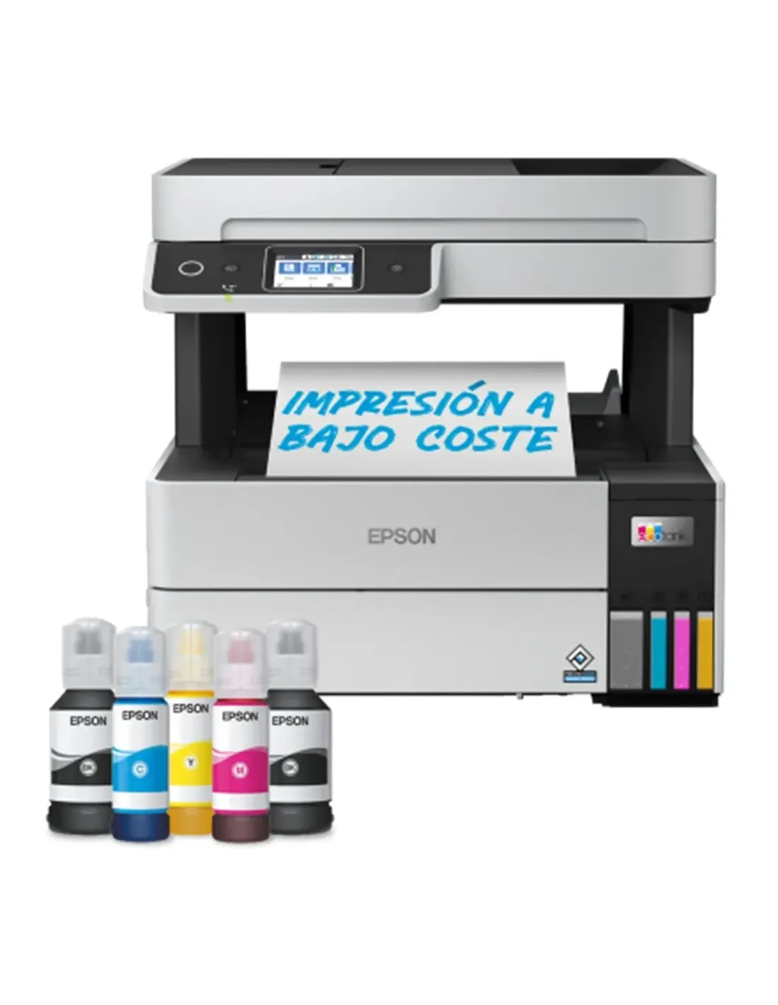 Características de la EPSON Multifunción EcoTank ET-5185 A4La Epson EcoTank Pro ET-5185 es una impresora multifunción A4 diseñada para oficinas domésticas y pequeñas empresas que necesitan productividad, bajo coste por página y alta fiabilidad. Gracias a su sistema de depósitos de tinta rellenables, ofrece un ahorro significativo frente a impresoras tradicionales, sin renunciar a funciones profesionales como fax, ADF y conectividad avanzada.Impresión profesional con tecnología PrecisionCoreEquipada con cabezal PrecisionCore sin calor, la ET-5185 proporciona impresiones rápidas, definidas y eficientes energéticamente. Utiliza tinta pigmentada DURABrite ET para obtener documentos resistentes al agua, manchas y marcadores, ideal para entornos de trabajo exigentes.Resolución de impresión: 4.800 x 1.200 pppVelocidad ISO: 13,8 ppm en monocromo / 8,9 ppm en colorPrimera página: 10 s en negro / 13,5 s en colorImpresión dúplex automática A437 ppm negro / 23 ppm color (modo borrador)Multifunción completa para el día a díaIntegra impresión, copia, escaneado y fax en un solo equipo compacto. Su pantalla táctil LCD en color de 6,1 cm facilita el acceso a todas las funciones, optimizando el flujo de trabajo diario.Alimentador automático de documentos (ADF) de 35 hojasBandeja frontal de 250 hojasCapacidad de salida: 30 hojasCiclo recomendado: 250 ? 1.500 páginas/mesAhorro extremo con sistema EcoTankEl sistema de depósitos rellenables con botellas de tinta de alta capacidad permite imprimir miles de páginas sin cambiar cartuchos. Incluye un juego completo de tintas y una botella negra adicional, lo que reduce significativamente el coste por página.Hasta 13.300 páginas en negroHasta 5.200 páginas en colorTintas pigmentadas DURABrite ETBotellas con sistema de cierre hermético antigoteoEscaneado preciso y fax profesionalSu escáner CIS ofrece digitalización de alta resolución, mientras que el fax integrado permite envío en color o monocromo con funciones avanzadas para entornos empresariales.Resolución de escaneado: 1.200 x 2.400 pppVelocidad escaneado ADF: 6 ipm negro / 5 ipm colorFax hasta 33,6 kbps (3 s por página)Memoria de fax hasta 180 páginasConectividad total y compatibilidad avanzadaImprime desde prácticamente cualquier lugar gracias a su conectividad Wi-Fi, Wi-Fi Direct y Ethernet. Es compatible con dispositivos móviles mediante Epson Smart Panel, Apple AirPrint y servicios en la nube.Wi-Fi IEEE 802.11b/g/n (WiFi 4) y Wi-Fi DirectEthernet 100 Base-TX / 10 Base-TUSB 2.0 de alta velocidadCompatibilidad PCL3, PCL5c, PCL5e, PCL6, PostScript 3 y PDF 1.7Diseño eficiente y bajo consumoLa tecnología sin calor reduce el consumo energético y el tiempo de inactividad. Es una impresora pensada para equipos de 1 a 4 usuarios, con dimensiones compactas que encajan en cualquier escritorio profesional.Consumo: 12 W en copia / 1 W en ahorro / 0,2 W apagadoDimensiones: 375 x 347 x 346 mmPeso: 7,3 kgPantalla táctil LCD color de 6,1 cmOtras especificaciones4 colores: Negro (127 ml), Cian, Magenta y Amarillo (70 ml)Configuración de inyectores: 400 negro + 128 por colorTamaño máximo de gota: 3,3 plFormatos compatibles: A4, A5, A6, B5, B6, Carta, Legal, sobres (DL, C4, C6, No.10), 9x13 cm, 10x15 cm, 13x18 cm, 13x20 cm, 20x25 cm y personalizadosPapel compatible: 64 ? 300 g/m²Sistemas operativos: Windows XP a Windows 10, Mac OS X 10.6.8 o posteriorPotencia acústica: 6,8 B (A) / Presión acústica: 55 dB (A)Servicios móviles: Epson Connect (iPrint, Email Print, Remote Print Driver, Scan-to-Cloud)