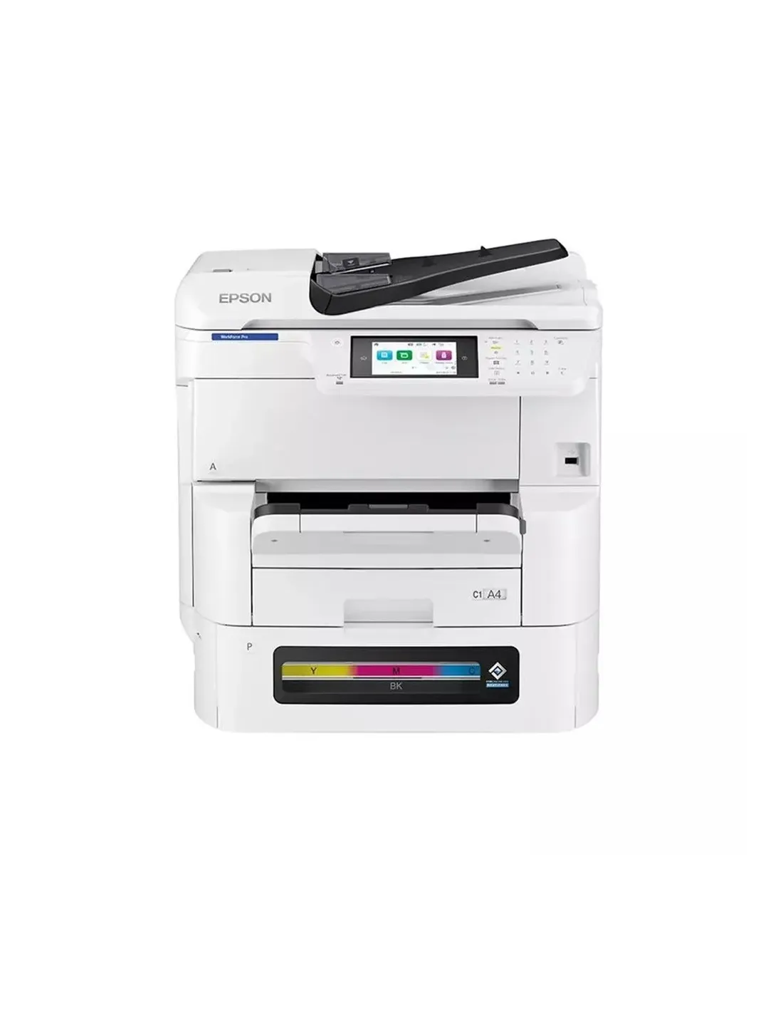 Características de la Epson WorkForce Pro EM-C8100RDWFLa Epson WorkForce Pro EM-C8100RDWF es una impresora multifunción A3 profesional diseñada para entornos empresariales con altos volúmenes de trabajo. Gracias a su tecnología PrecisionCore, su sistema de tinta reemplazable RIPS y su completa conectividad de red, ofrece impresión, copia, escaneado y fax con gran velocidad, calidad profesional y costes optimizados. Ideal para oficinas, departamentos administrativos y empresas que necesitan fiabilidad diaria y alta productividad.Alto rendimiento para entornos exigentesCon un ciclo mensual máximo de hasta 75.000 páginas y un volumen recomendado de entre 2.000 y 10.000 páginas, esta impresora está preparada para soportar cargas intensivas. Su velocidad de impresión y copia garantiza flujos de trabajo ágiles incluso en formatos A3.Hasta 25 ppm en monocromo y 24 ppm en color (ISO/IEC 24734)Impresión A3 hasta 13 ppmDúplex automático en impresión, copia y escaneadoPrimera página en solo 5,5 segundosTecnología PrecisionCore y tintas DURABrite ProEquipada con 4 tintas independientes (Cian, Magenta, Amarillo y Negro) y tecnología Epson DURABrite Pro, ofrece documentos con colores intensos y textos definidos. La combinación de 4.800 x 1.200 ppp de resolución y gota mínima de 4,6 pl garantiza resultados profesionales tanto en documentos corporativos como en materiales gráficos.Resolución hasta 4.800 x 1.200 ppp800 inyectores por color y 800 en negroVariable Sized Droplet TechnologyEmulaciones: PCL 5c, PCL 5e, PCL 6, PostScript 3, PDF 1.7, ESC/P-REscaneado y copia avanzadosSu escáner con sensor CIS y resolución óptica de 1.200 x 2.400 ppp permite digitalizar documentos con gran precisión. El alimentador automático de 50 hojas y la función dúplex aceleran la digitalización de grandes volúmenes.Escaneado hasta 45 ipm en dúplex (200 dpi)Copia hasta 22 ipm en B/N y 21 ipm en colorAmpliación hasta 400% y reducción hasta 25%Hasta 999 copias por trabajoConectividad profesional y seguridad avanzadaPreparada para integrarse en cualquier infraestructura empresarial, incorpora Wi-Fi (ac), Gigabit LAN, Wi-Fi Direct y USB 2.0. Además, dispone de protocolos de seguridad avanzados como SNMP 3, IPsec, WPA3 y TLS v1.3, garantizando la protección de la información.Compatible con AirPrintImpresión y escaneado a USB, FTP, correo electrónico y carpetas de redFax a correo electrónico y fax a carpetaAmplia compatibilidad con Windows, macOS, Linux y entornos Windows ServerGestor de papel versátil hasta A3Admite una capacidad máxima de hasta 1.835 hojas y soporta múltiples formatos, desde A6 hasta A3 y Tabloid. Su bandeja principal, bandeja multiusos y alimentador automático permiten gestionar distintos tipos de papel en entornos profesionales.Capacidad estándar: 335 hojasBandeja de entrada de 250 hojas + bandeja multiusos de 85 hojasSalida de hasta 250 hojasSoporta papel de 64 g/m² a 300 g/m²Fax profesional Super G3 integradoIntegra fax Super G3 de 33.6 Kbps con memoria de hasta 550 páginas, marcado rápido para 2.000 estaciones y funciones como remarcación automática y recepción en memoria, facilitando la gestión documental en oficinas tradicionales.Fax desde PCModo de corrección de errores (ECM)Libreta de direcciones integradaEficiencia energética y diseño robustoCon un consumo en funcionamiento de 43 W y solo 1 W en reposo, combina alto rendimiento y eficiencia energética. Su construcción robusta y dimensiones profesionales la convierten en una solución estable para entornos de trabajo exigentes.Consumo en espera: 20 WVoltaje: CA 120/230 V (50/60Hz)Nivel de ruido: 51 dBA en funcionamientoDimensiones: 62,1 x 65 x 64,1 cmPeso: 60,4 kgOtras especificacionesPantalla táctil integradaSistema Replaceable Ink Pack System (RIPS)Software incluido: EPSON Scan 2Consumibles incluidos: 1 paquete de tinta negro, cian, magenta y amarilloCompatibilidad con sobres, papel reciclado, papel fotográfico brillante y papel con membrete