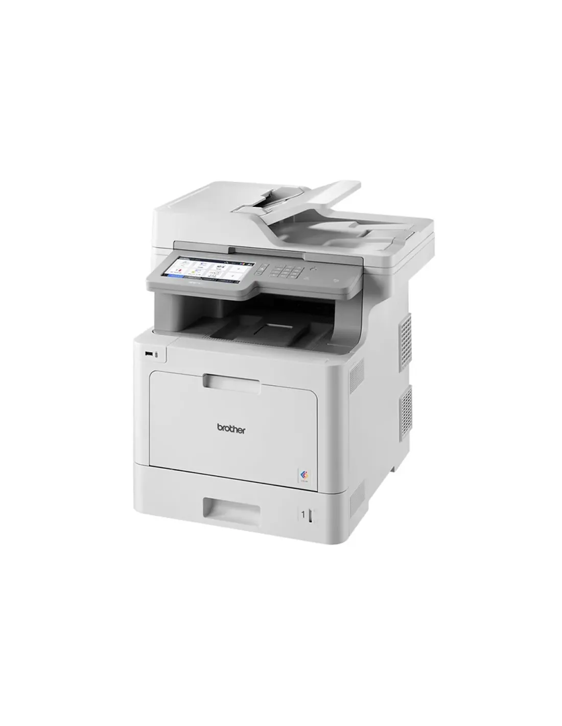 MarcaBrotherModeloMFCL9570CDWRE1Método de impresión- Impresora multifunción fax láser ColorImpresión- Velocidad de impresión a doble cara A4: Hasta 14 páginas por minuto- Velocidad de impresión A4: Hasta 31 páginas por minuto- Resolución: 2.400ppp (2.400 x 600ppp), 600 x 600ppp- Velocidad de impresión color a doble cara A4: 14 páginas por minuto- Velocidad de impresión monocromo a doble cara A4: Hasta 14 páginas por minuto- Velocidad de impresión color A4: 31 páginas por minuto- Velocidad de impresión monocromo A4: 31 páginas por minuto- Impresión automática a doble cara: Sí- Emulaciones: PCL6, BR-Script3 (PostScript®3TM Language Emulation), PDF 1.7, XPS- Tiempo de impresión 1ª página: Menos de 15 segundos- Volumen mensual recomendado: Hasta 6.000 impresiones mensualesEspecificaciones de los soportes- Tipos y gramajes: Bandeja estándar – papel normal, reciclado, coloreado y membrete (entre 60 - 105g/m2). Bandeja multipropósito – papel normal, reciclado, bond, coloreado, membrete y glossy (entre 60 -163g/m2)- Tamaños: Bandeja estándar - A4, Letter, A5, A5 (longitudinal), A6, Executive, Legal, Folio, Mexico Legal. Bandeja multipropósito - Ancho: 76,2mm a 215,9mm x Largo: 127mm a 355,6mmManejo de papel- Entrada de papel: Bandeja de 250 hojas. Bandeja multipropósito de 50 hojas- Salida de papel: Cara abajo - 150 hojas. Cara arriba (salida directa del papel) - 1 hoja- Capacidad de papel de la bandeja estándar: 250 hojasEscaneo- Escaneado a doble cara automático: Sí- Resolución: Desde el ADF: Hasta 1.200 x 600ppp. Desde el cristal: Hasta 1.200 x 2.400ppp. Interpolada: Hasta 19.200 x 19.200ppp- Escanea a: USB, E-mail, OCR, Imagen, Archivo, carpeta de red (solo Windows®), FTP, SFTP, servidor de Email, SharePoint, Escaneado Fácil a Email, PDF con capacidad de búsqueda, Microsoft® Word, Microsoft® Excel & Microsoft® PowerPoint y a la nube- Velocidad: Simplex: 50ipm (imágenes por minuto) color y mono. Dúplex: 100ipm (imágenes por minuto) color y mono- Tipo de escáner: CIS dobleCopia- Copia a doble cara automática: Sí (A4)- Resolución: Hasta 1.200 x 600ppp- Velocidad: Hasta 31cpm- Velocidad de copia a doble cara automática A4: 14 copias por minuto- Velocidad de copia color A4: 31 copias por minuto- Ratio de ampliación / reducción: Reduce o amplia documentos desde 25% a 400% en incrementos del 1%- Velocidad de copia monocromo A4: 31 copias por minuto- Copia N en 1: Sí- Resolución (color): Hasta 1200 x 600 ppp- Resolución (monocromo): Hasta 1200 x 600 pppFax- Fax automático por las dos caras: Sí- Módem de fax: 33600 kbps- Fax por Internet (iFax): Envío y recepción de documentos de fax a través de Internet sin utilizar una línea telefónica- PC-Fax: SíConectividad- Conectividad: Red cableada, Red inalámbrica, USB- Interfaz local: USB- NFC: Sí- Wi-Fi Direct: IEEE 802.11g/n- Interfaz de red cableada: 10Base-T/100Base-TX/1000Base-T- Interfaz de red inalámbrica: IEEE 802.11g/nConectividad móvil- Compatible: AirPrint, Android Print Service Plugin, Google Cloud Print 2.0, iPrint&Scan, Mopria, WiFi Direct™Red- Impresión segura: Sí- Bloqueo seguro de funciones v2: Restringe la impresión de usuarios individuales o grupos en la red. Puede utilizarse con el nombre de usuario de PC hasta un máximo de 200 usuarios- Wi-Fi Direct™: Sí- Red cableada: Ethernet 10Base-T/100Base-TX/1000Base-T- Seguridad de red cableada: APOP, SMTP-AUTH, SSL/TLS (IPPS, HTTPS, SMTP, POP3, IMAP4), SNMP v3, 802.1x (EAP- MD5, EAP-FAST, PEAP, EAP-TLS, EAP-TTLS), Kerberos, IPsec- Aplicaciones WiFi: Sí- Red WiFi: WiFi IEEE 802.11b/g/n (Modo Infraestructura / Adhoc)- Seguridad de red WiFi: WEP 64/128 bit, WPA-PSK (TKIP/AES), WPA2-PSK (TKIP/AES) APOP, SMTP-AUTH, SSL/TLS (IPPS, HTTPS, SMTP, POP3, IMAP4), SNMP v3, 802.1x (LEAP, EAP-FAST, PEAP, EAP-TLS, EAP-TTLS), Kerberos, IPsec- Configuración WiFi soportada: SíOtras características- Tipo de impresora: Color- Functions: Imprimir, Copia y escaneado, Fax- Pantalla: Pantalla color táctil- Tamaño de pantalla: 15,38 x 8,56cm- Clasificación de láser: Producto Laser Clase 1 (IEC60825-1:2007)- Tamaño máximo del papel: A4- Memoria: 1GB- Procesador: Principal 800 Mhz, Secundario 133 Mhz- Tecnología: LáserBrother Apps- Creative Center: Sí- Easy Scan to Email: Sí- Enlarge Text Copy: Sí- Scan to Mobile: Sí- Scan to Searchable PDF: SíDimensiones y pesos- Con caja: 675(An) x 652(F) x 726(Al)mm- Con caja: 36.1 kg- Sin caja: 495(An) x 526(F) x 549(Al)mm- Peso: 29.7 kgConsumo de energía- Funcionamiento: 580 vatios- Modo silencioso: 340 vatios- Modo lista: 70 vatios- Hibernación: 1.7 vatios- Consumo de energía: 580 vatios- Ahorro de energía: Sí- Nivel de potencia sonora: 49 dB- Nivel de presión sonora: 6.56 dBA- Ahorro de tóner: Sí- Consumo eléctrico: 1900 VatiosMedio Ambiente- Humedad de funcionamiento: 20 - 80 %- Temperatura de funcionamiento: 10 - 32º- Humedad de almacenamiento: 10 - 90 %- Temperatura de almacenamiento: 0 - 40º- Certificación medioambiental Blue Angel: Sí- Acreditación medioambiental Energy Star: SíFunciones de seguridad- 802.1x: Sí- Filtro de IP: Sí- Bloqueo seguro de funciones v3: Sí- Impresión segura: Sí- Impresión segura con SSL: SíSoluciones- Compatible: AirPrint, Android Print Service Plugin, b-guard, Box, Brother Apps, BSI, Dropbox, Google Cloud Print, Google Drive, iPrint&Scan, Managed Print Services, Mopria, OneDriveConsumibles y accesorios- Accesorios: LT330CL: Bandeja opcional de 250 hojas (máx. 3). LT340CL: Bandeja opcional de 500 hojas (máx.2). CH1000: Soporte para lector de tarjetas. TT4000: Torre de 4 bandejas (requiere conector TC4000)- Tóner incluido: Tóner negro, cian, magenta, amarillo - 6.500 páginas- Bandeja inferior opcional: LT330CL: Bandeja opcional de 250 hojas (máx. 3). LT340CL: Bandeja opcional de 500 hojas (máx.2)- Tóner estándar: Tóner negro (TN910BK) - 9.000 páginas, Tóner cian, Tóner magenta (TN910M), Tóner amarillo (TN910Y) - 9.000 pági