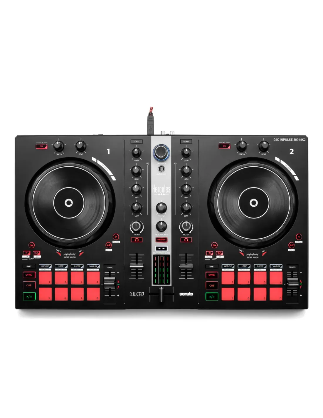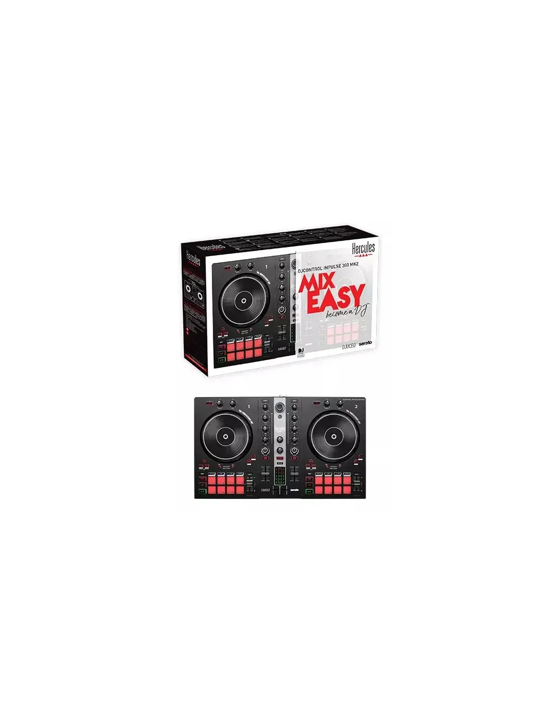 Hercules INPULSE 300 MK2 Controladora con opción de realizar scratch utilizando discos de vinilo Negro, Rojo
