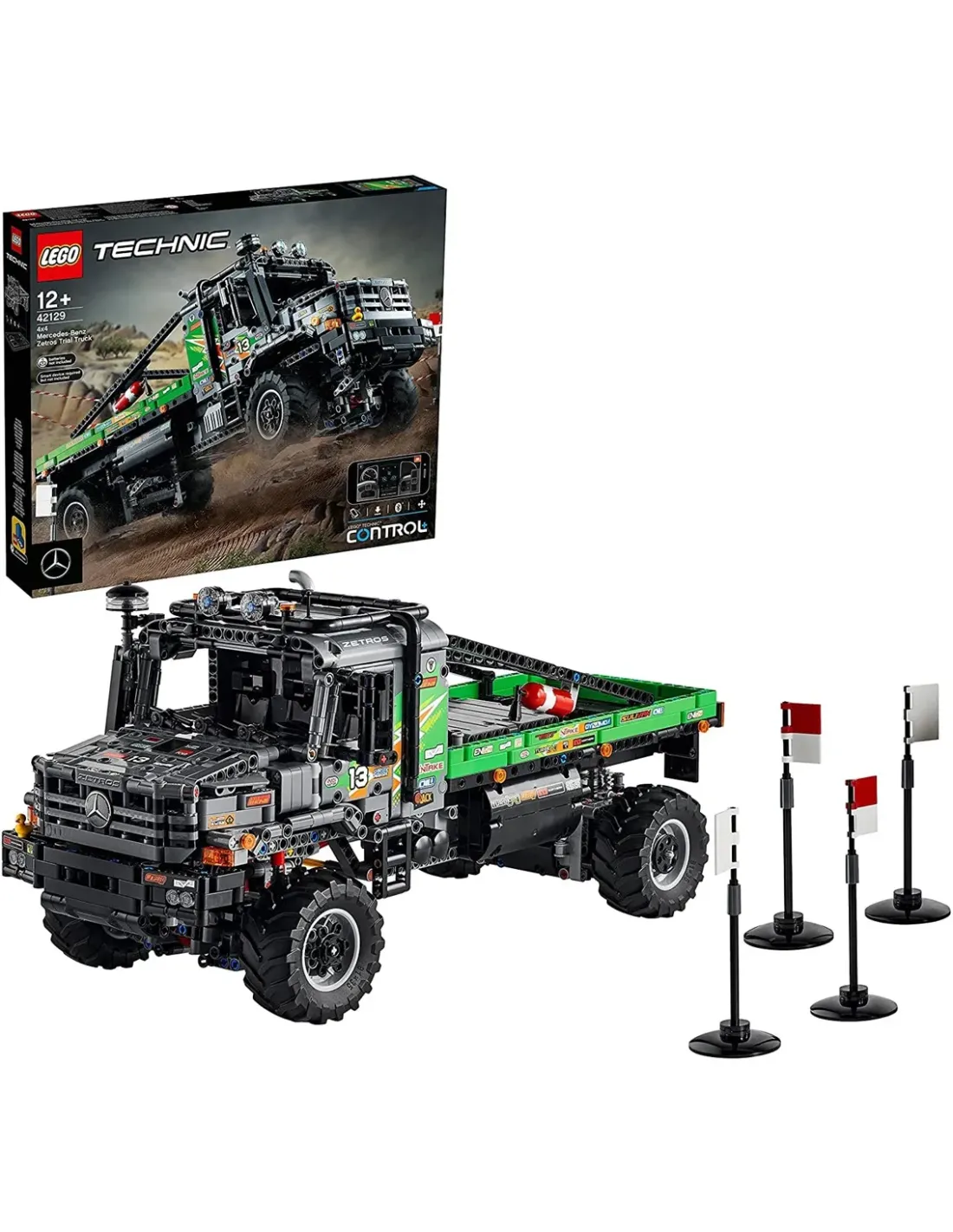 Toda persona que adore los camiones de juguete potentes y los juguetes deconstrucción se lo va a pasar genial montando la maqueta LEGO® TechnicCamión de Trial 4x4 Mercedes-Benz Zetros. Este camión de juguete lleno decaracterísticas de gran realismo, ofrece una motivadora experiencia deconstrucción a adultos y niños a partir de 12 años. Abre el capó y las puertasde la cabina. Contempla el sistema de suspensión en las 4 ruedas y abre latapa de mantenimiento para inspeccionar la caja de cambios. La maquetaincluye también un detallado motor con ventilador del radiador giratorio.Como novedad en LEGO Technic, esta maqueta cuenta con bloqueo de losdiferenciales.Bloquéalos y desbloquéalos usando la app para conducir el camión porterrenos accidentados.Explora la appCon esta maqueta, construir es solo el principio. Usa la app CONTROL+ paraponer a prueba esta imponente máquina. Hay muchas maneras de jugar:descubre desafíos en la app, trata de superarlos y celebra tus logros.A los fans de los juguetes de construcción les apasionará dar forma alCamión de Trial 4x4 Mercedes-Benz Zetros, su propia versión en maqueta dela máquina real. Echa un vistazo a sus increíbles funciones usando la appLEGO® Technic CONTROL+.La maqueta LEGO® Technic Camión de Trial 4x4 Mercedes-Benz Zetros(42129) está repleta de características de gran realismo, entre ellas unsistema de suspensión en las 4 ruedas, una detallada caja de cambios ybloqueo de los diferenciales.Luce elementos de diseño que asemejan el modelo al de verdad, comopegatinas con motivos de competición y 2 extintores. Usa las banderas paracrear un circuito de obstáculos y pon a prueba las prestaciones del camiónen diversos terrenos.Este set es fantástico para que adultos y peques a partir de 12 años lodisfruten juntos. También es un juguete genial para jóvenes constructoresLEGO® ansiosos por sumergirse en una desafiante experiencia deconstrucción.La maqueta del camión de juguete mide aproximadamente 21 cm de altura,48 cm de longitud y 19 cm de anchura.Requiere 6 pilas AA (no incluidas). La batería a pilas se desconecta confacilidad: cambiar las pilas cuando haga falta será muy sencillo.Este camión LEGO® Technic teledirigido controlado por app tiene 1 xSmarthub controlado por Bluetooth®, 3 x motores grandes y 1 x motormediano, incluidos en el set.Los juguetes de construcción LEGO® Technic proporcionan una experienciaavanzada a fans de LEGO que estén dispuestos a afrontar su próximodesafío creativo.Los componentes LEGO® Technic cumplen rigurosas normas del sector,por lo que ofrecen siempre las mismas cualidades, son compatibles entresí, y se conectan sistemáticamente una y otra vez, así ha sido desde 1958.Los componentes LEGO® Technic se dejan caer, se calientan, se aplastan,se retuercen y se analizan para asegurarnos de que satisfagan estrictosestándares mundiales de seguridad.