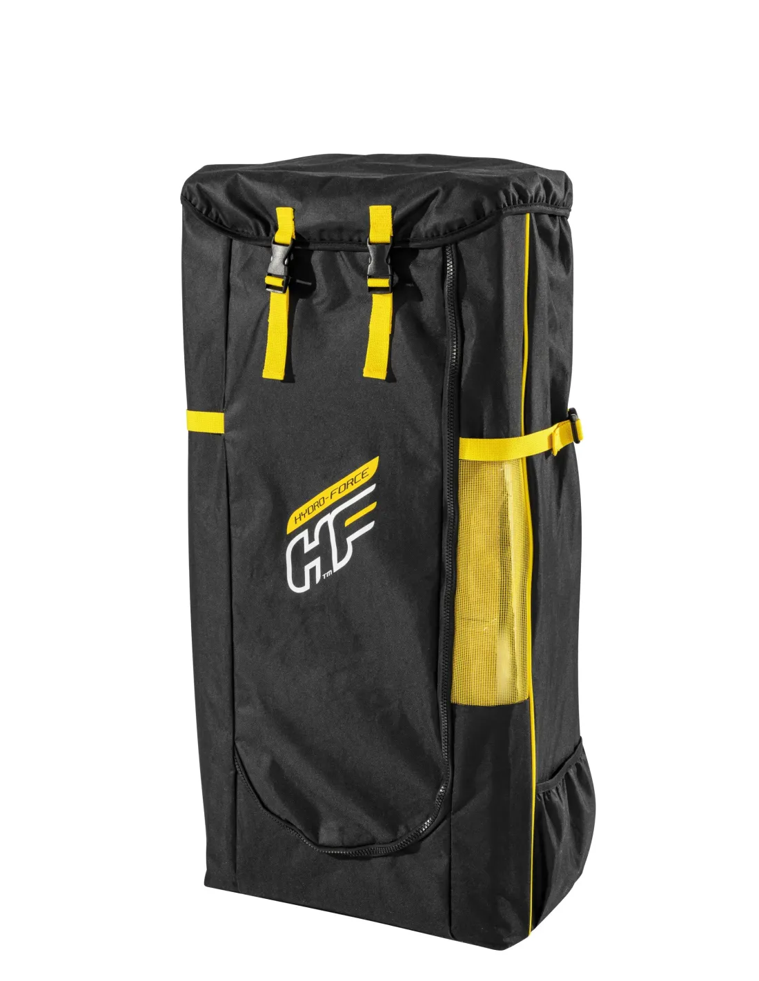Características de la Bestway 65343 - Tabla Paddle Surf Hinchable Fastblast Tech Set 3,81 mLa **tabla de paddle surf hinchable Bestway Fastblast Tech Set** está diseñada para quienes buscan **velocidad, estabilidad y libertad en el agua**. Con una construcción pensada para el touring rápido y la competición recreativa, ofrece un deslizamiento suave, controlado y eficiente tanto en lagos como en mar abierto. Ideal para usuarios intermedios y avanzados, también resulta estable y segura para quienes se inician en este deporte.Diseño hidrodinámico para mayor velocidadGracias a su longitud de **3,81 metros** y un perfil estilizado en forma de V, la Fastblast Tech corta el agua con más eficacia, permitiendo alcanzar **mayores velocidades con menor esfuerzo**. Una tabla perfecta para quienes quieren entrenar, explorar o simplemente disfrutar de largas travesías con sensación de fluidez.Dimensiones: 381 x 76 x 15 cmPerfil con casco en V para mejor dirección y velocidadPresión recomendada: 12-15 PSIConstrucción resistente y estableFabricada con materiales de alta calidad, esta tabla ofrece **resistencia frente a impactos, rayos UV y deformaciones**, sin sacrificar ligereza. La superficie superior antideslizante garantiza un **apoyo seguro en todo momento**, incluso en condiciones de oleaje o maniobras rápidas.Estructura en PVC laminado de alta durabilidadTecnología DropStitch para mayor rigidezSoporta hasta 120 kg de pesoEquipamiento completo para uso inmediatoEl set incluye todo lo necesario para empezar desde el primer día: remo, bomba, mochila y más. Todo se transporta fácilmente gracias a su formato plegable y a la bolsa de lujo incluida.Remo de aluminio desmontable (1 hoja)Bomba manual de inflado rápidoAleta central extraíble para mejor estabilidadMochila de transporte de lujoCuerda elástica en proa para objetos personalesAnillo de acero para correa de seguridad al tobilloAsa central para transporte cómodoKit de reparación incluidoFácil de transportar y guardarUna vez deshinchada, la tabla se pliega rápidamente para **guardarla en espacios reducidos o llevarla en el maletero** sin dificultad. Es ideal para escapadas de verano, salidas espontáneas o quienes buscan un equipo versátil sin renunciar al rendimiento.Formato hinchable y plegableTransporte fácil con mochila incluidaMontaje y desmontaje rápidosOtras especificacionesTipo de uso: Touring rápido / Competición recreativaSuperficie antideslizante con textura en panal