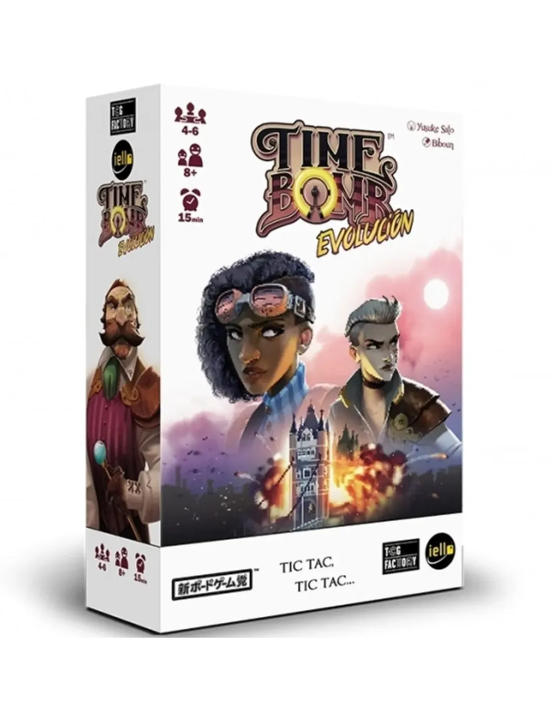 Time Bomb Evolución es un divertido juego de mesa conmecánicas de roles ocultos preparado para 4 a 8 jugadores a partirde 8 años de edad.Utiliza tus capacidades de deducción para intentar localizar lasnuevas bombas con increíbles efectos distintos. Redescubre elclásico Time Bomb en su versión Evolución, diseñada tanto parajugadores principiantes como experimentados.Londres, 1890. La noche cae sobre la ciudad mientras un carruajegalopa entre la niebla, empujando a un lado a los transeúntes, susgritos se mezclan con el tronar de los cascos.En su interior, Sherlock Holmes golpetea nerviosa su reloj debolsillo y observa la magnífica silueta del Big Ben sobre elTámesis. Te sacaré de esta, aguanta se dice a sí mismapreocupada.Moriarty ha lanzado un reto a su archienemiga Sherlock Holmes: labrillante detective deberá desactivar cada bomba antes de queexplote. De lo contrario, no habrá nadie que impida a Moriartysembrar el caos en toda Inglaterra.Time Bomb Evolución es un divertido juego de mesa conmecánicas de roles ocultos preparado para 4 a 8 jugadores a partirde 8 años de edad.Utiliza tus capacidades de deducción para intentar localizar lasnuevas bombas con increíbles efectos distintos. Redescubre elclásico Time Bomb en su versión Evolución, diseñada tanto parajugadores principiantes como experimentados.Dos bandos, dos objetivos distintosEstás preparado para convertirte en seguidor de Sherlock o deMoriarty? En Time Bomb Evolución empiezas la partida con unacarta secreta que te confirma a cuál de los dos bandosperteneces. Si estás del lado de Sherlock, tendrás que cortar loscables adecuados para evitar que su archienemigo haga explotarlas bombas... Pero si eres miembro de la banda de Moriarty, tuobjetivo será justo el contrario: ¡sembrar el caos en Londreshaciendo que las bombas exploten!Este nuevo juego de Yusuke Sato retoma la mecánica básica delclásico Time Bomb y le añade una versión denominada Evolución.Esta capa adicional ofrece una mayor capacidad de decisión yconvierte este nuevo título en un juego mucho más dinámico ydivertido.Componentes:6 cartas de personaje36 cartas de cable6 cartas numeradas1 alicates1 carta de alicates6 indicadores de tiempo1 hoja de reglamento con la variante Evoluciónreglamento