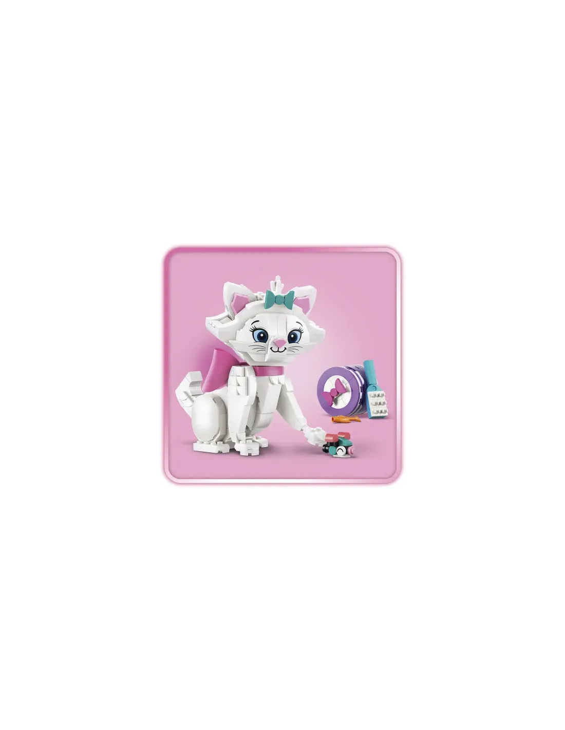 Características del LEGO Disney Los Aristogatos - Adorable Marie (43286)El set LEGO Disney Adorable Marie (43286) está inspirado en la encantadora gatita blanca de la película "Los Aristogatos". Diseñado para niños a partir de 7 años, este modelo combina diversión creativa, construcción interactiva y posabilidad en una figura articulada ideal para jugar y decorar. Es perfecto para fans de Disney, los animales y la construcción con bloques LEGO.Una figura que cobra vidaMarie no solo es adorable, también es articulada. Gracias a su cabeza, patas y cola ajustables, los niños pueden colocarla en diferentes posturas para imaginar historias o exhibirla con estilo. Su expresión dulce y detalles como el lazo rosa o el collar la hacen reconocible al instante.Incluye figura construible de MariePartes articuladas: cabeza, patas, colaDiseño fiel al personaje original DisneyAccesorios para un juego más completoEl set viene acompañado de accesorios tematizados que permiten ampliar la experiencia de juego. Incluye una caja redonda morada, un lazo extra, un peine y un pequeño carrito de juguete, perfectos para crear escenas y aventuras imaginativas con Marie.Incluye caja morada con tapa desmontablePeine y lazo para el cuidado de MarieMini carrito de juguete adicionalConstrucción para jugar y decorarCon sus 369 piezas, este set ofrece un desafío asequible y gratificante para constructores jóvenes. Una vez terminado, el modelo tiene un aspecto decorativo que luce genial en estanterías o escritorios. Ideal para regalar a pequeños fans de Disney y LEGO.369 piezas en totalEdad recomendada: 7 años en adelanteIdeal como regalo creativo y decorativoOtras especificacionesNúmero de set: 43286Licencia oficial DisneyCompatible con otras figuras LEGO Disney