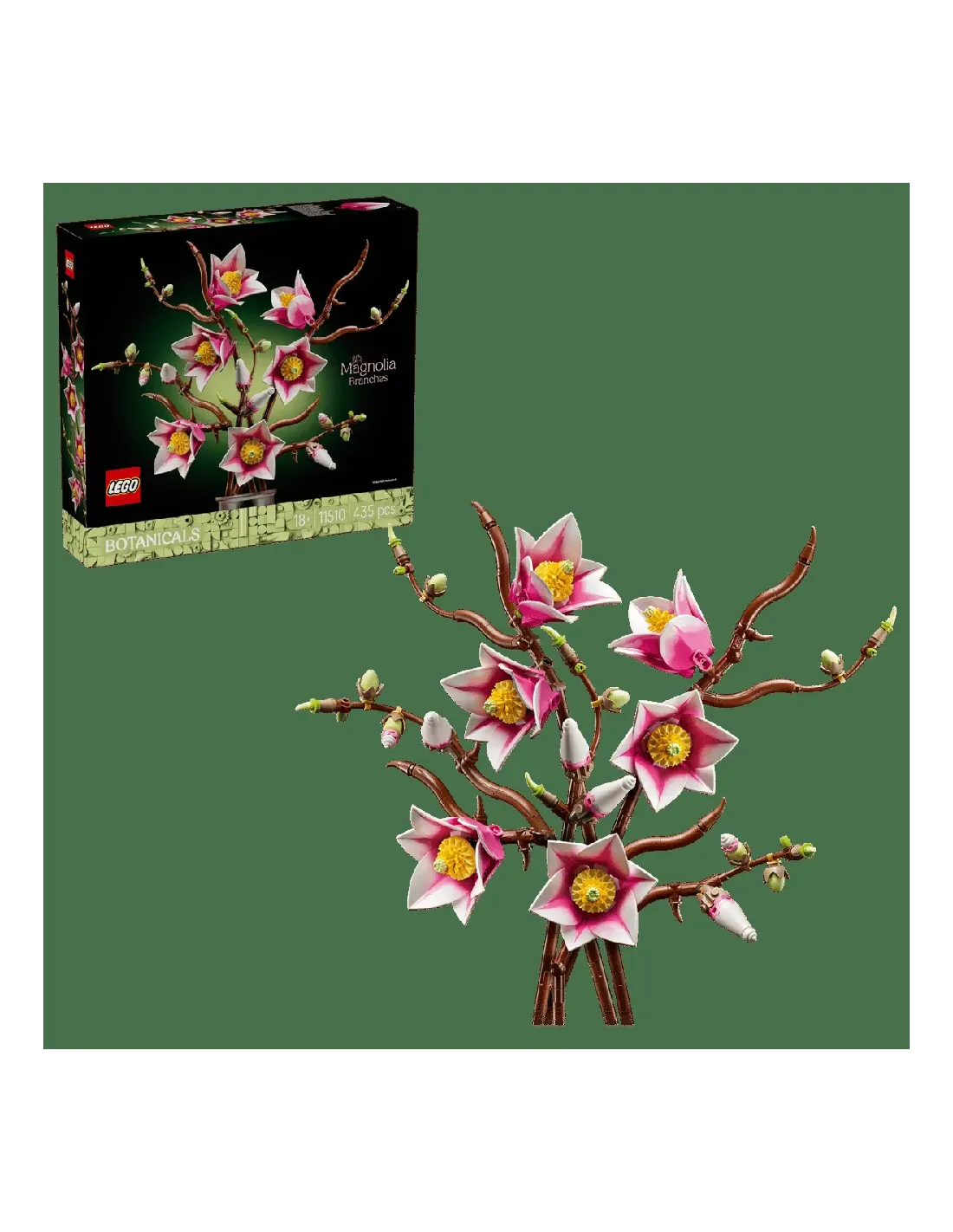 Características del LEGO Botanicals Ramas de MagnoliaEl set LEGO Botanicals Ramas de Magnolia es una propuesta decorativa y creativa diseñada para adultos que buscan una alternativa elegante a las flores tradicionales. Este modelo combina diseño realista y experiencia de construcción relajante, dando como resultado una pieza decorativa única ideal para el hogar o la oficina.Diseño floral realista y decorativoEste set recrea con gran detalle las delicadas flores de magnolia, destacando por sus tonos rosados y blancos cuidadosamente combinados. El resultado es una composición visualmente atractiva que aporta un toque natural y sofisticado a cualquier espacio.Flores de magnolia en tonos rosa y blancoDiseño detallado con acabado realistaIdeal como elemento decorativo en interioresExperiencia de construcción relajantePensado para un público adulto, este set ofrece una experiencia de montaje entretenida y relajante, perfecta para desconectar y disfrutar del proceso creativo. Una vez completado, se convierte en una pieza decorativa duradera.Recomendado para mayores de 18 añosMontaje detallado y satisfactorioEnfoque creativo y antiestrésDecoración versátil y sin mantenimientoA diferencia de las flores naturales, estas ramas de magnolia no requieren cuidados, lo que las convierte en una solución decorativa duradera y sin mantenimiento. Puedes colocarlas en jarrones o combinarlas con otros sets de la colección Botanicals.No necesita agua ni mantenimientoPerfecto para salones, oficinas o estanteríasCompatible con otros sets LEGO BotanicalsCalidad y diseño LEGOComo es habitual en LEGO, este set garantiza precisión en el ensamblaje y materiales de alta calidad, ofreciendo una construcción estable y duradera que mantiene su aspecto con el paso del tiempo.Piezas LEGO de alta calidadConstrucción estableDiseño cuidado en cada detalle