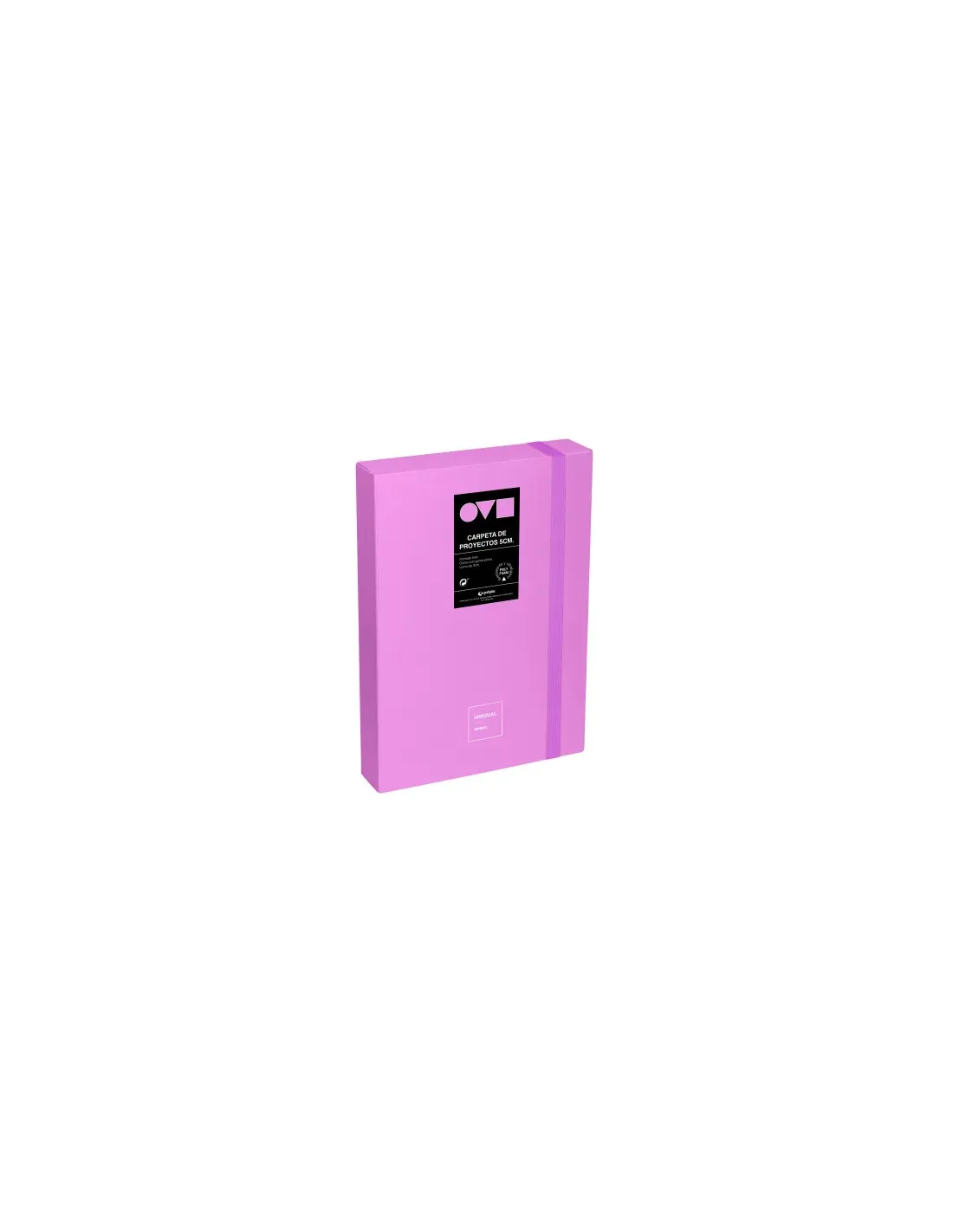 Caja proyectos Unequal Minimal color lavanda. Esta caja de proyectos tiene unas cubiertas realizadas en polyfoam, material resistente y ultraligero, tamaño folio, apertura 360º, cierre con goma plana y lomo de 50 mm.