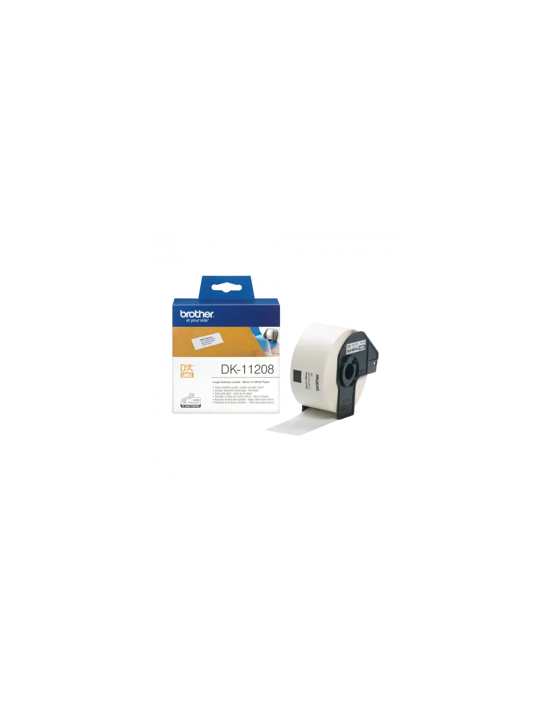 Marca Brother Modelo DK-11208 Uso Rollo de Etiquetas precortadas de direcciones grandes Para Brother QL 1050, 1050N, 1060N, 500, 500A, 500A (50TH Year Anniversary Model), 500BS, 500BW, 550, 560, 560VP, 570, 580N, 650TD, 700 Otras características - Tamaño: 38 x 90 mm - Color blanco - 400 etiquetas Fecha Revisión 12-03-2012 por DAV