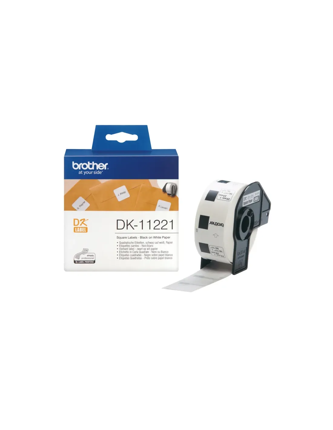 Brother Etiquetas precortadas cuadradas (papel térmico), Negro sobre blanco, 1000 pieza(s), DK, Blanco, Térmica directa, Brother