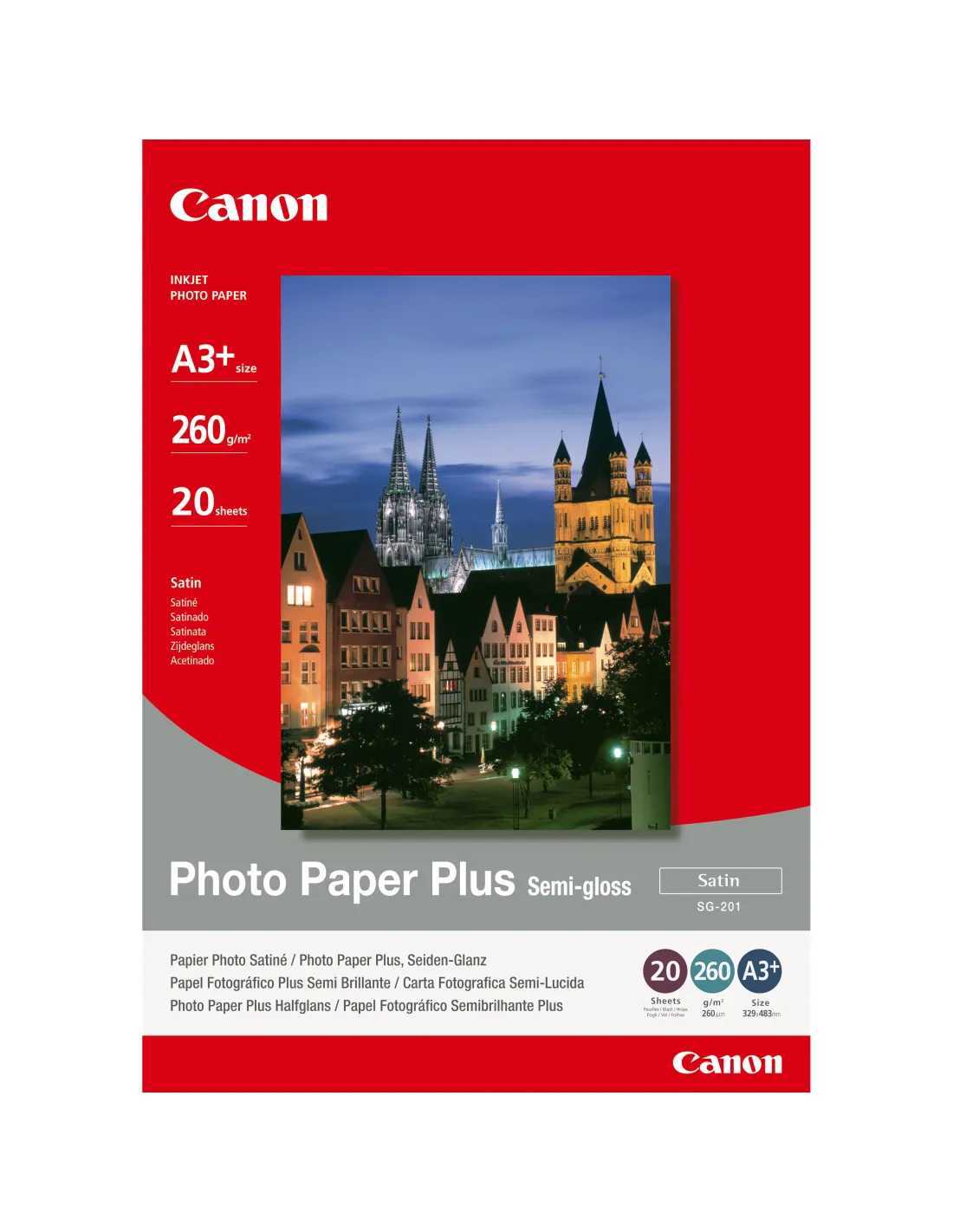 Canon 1686B032. Peso de media: 260 g/m², Nivel de brillo de impresora: Semi-gloss. Hojas de medios por paquete: 20 hojas, Tamaño estándar de media: A3+