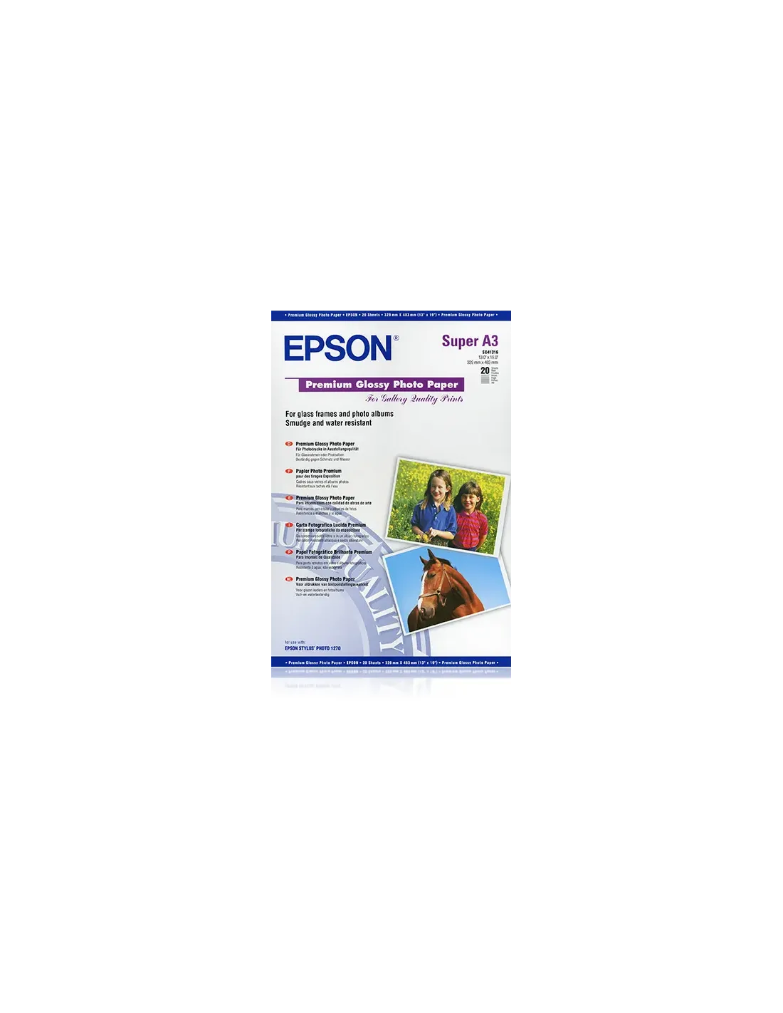 Epson Premium Glossy Photo Paper, DIN A3+, 250 g/m², 20 hojas, Impresión por inyección de tinta, A3+ (330x483 mm), Brillo, 20 hojas, 250 g/m², 345 mm