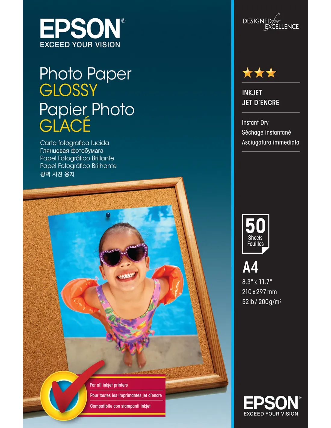 Epson Photo Paper Glossy - A4 - 50 Hojas, Brillo, 200 g/m², A4, 50 hojas, - WorkForce WF-7610DWF - WorkForce WF-7110DTW - WorkForce WF-3620DWF - WorkForce WF-2750DWF -..., 1 pieza(s)