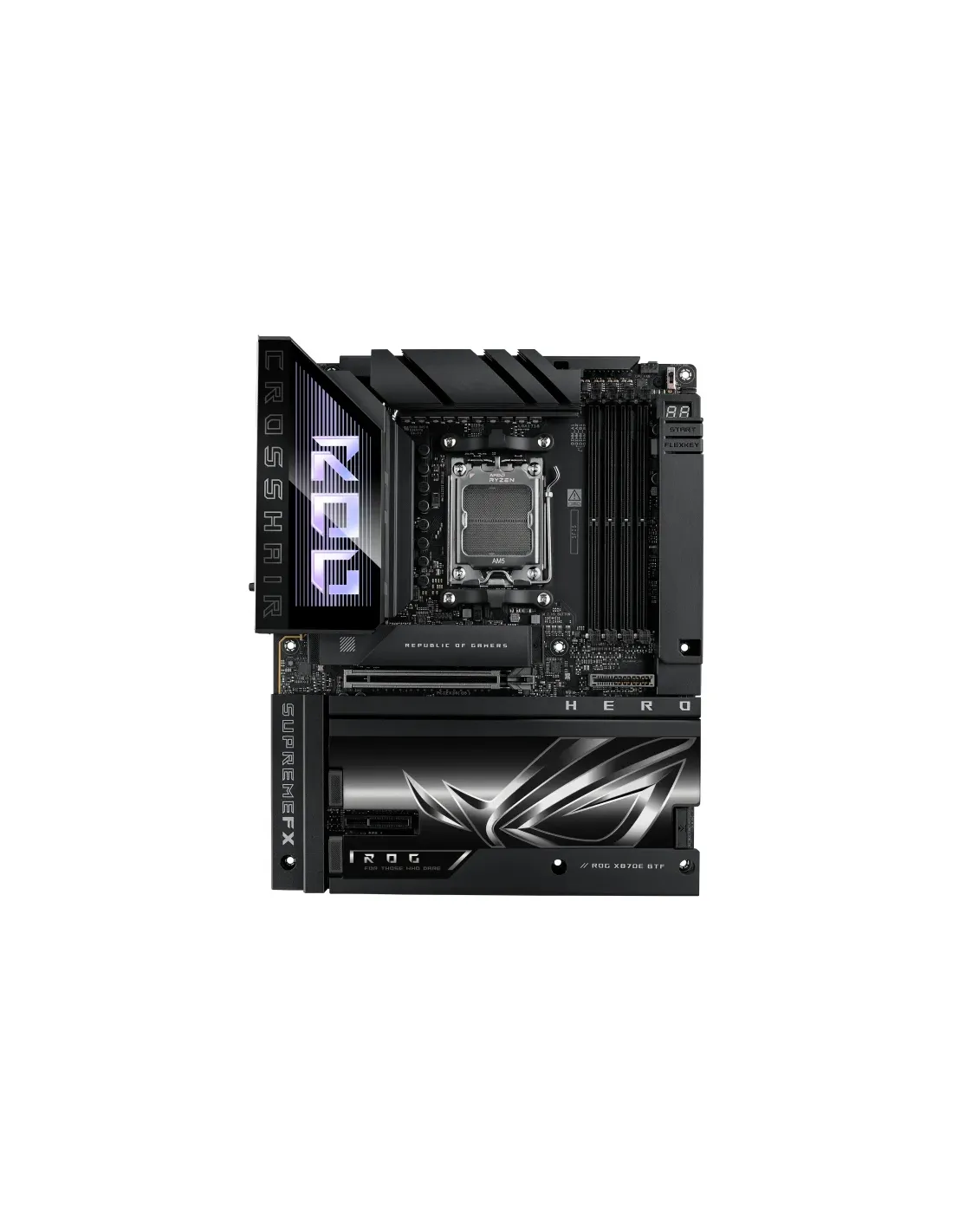 ASUS ROG CROSSHAIR X870E HERO BTF. Fabricante de procesador: AMD, Socket de procesador: Zócalo AM5, Procesador compatible: AMD Ryzen 7000 Series, AMD Ryzen 8000 Series, AMD Ryzen 9000 Series. tipos de memoria compatibles: DDR5-SDRAM, Memoria interna máxima: 256 GB, Tipo de ranuras de memoria: DIMM. Interfaces de disco de almacenamiento soportados: M.2, SATA III, Tipos de unidades de almacenamiento admitidas: HDD & SSD, Niveles RAID: 0, 1, 5, 10. Tipo de interfaz ethernet: 2.5 Gigabit Ethernet, 5 Gigabit Ethernet, Estándar Wi-Fi: Wi-Fi 7 (802.11be). Componente para: PC, Factor de forma: ATX, Familia del chipset: AMD
