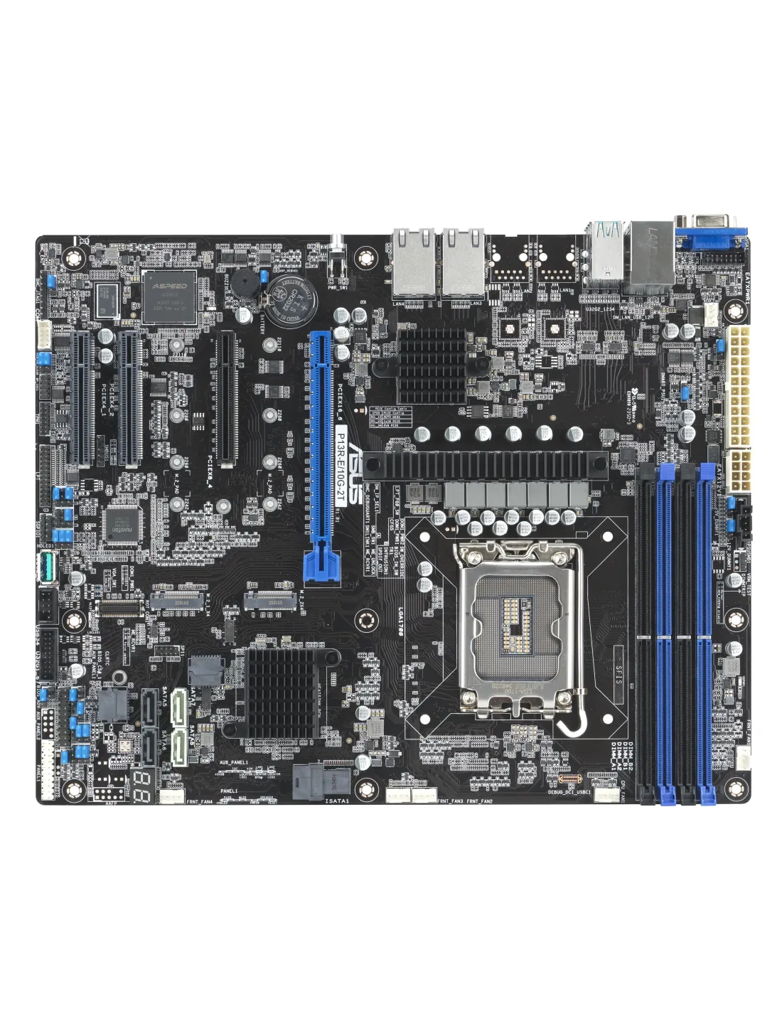 ASUS P13R-E/10G-2T. Fabricante de procesador: Intel, Socket de procesador: LGA 1700, Procesador compatible: Intel® Pentium®, Intel Xeon E. tipos de memoria compatibles: DDR5-SDRAM, Memoria interna máxima: 128 GB, Tipo de ranuras de memoria: DIMM. Interfaces de disco de almacenamiento soportados: PCI Express, SATA III, Tipos de unidades de almacenamiento admitidas: HDD & SSD. Tipo de interfaz ethernet: 10 Gigabit Ethernet. Componente para: Servidor, Factor de forma: ATX, Familia del chipset: Intel