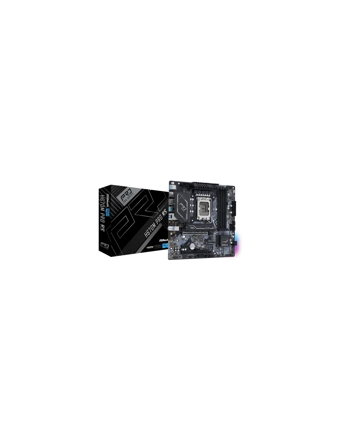 Asrock H670M Pro RS. Fabricante de procesador: Intel, Socket de procesador: LGA 1700, Procesador compatible: Intel® Celeron®, Intel® Core™ i3, Intel Core i5, Intel Core i7, Intel Core i9, Intel® Pentium®
