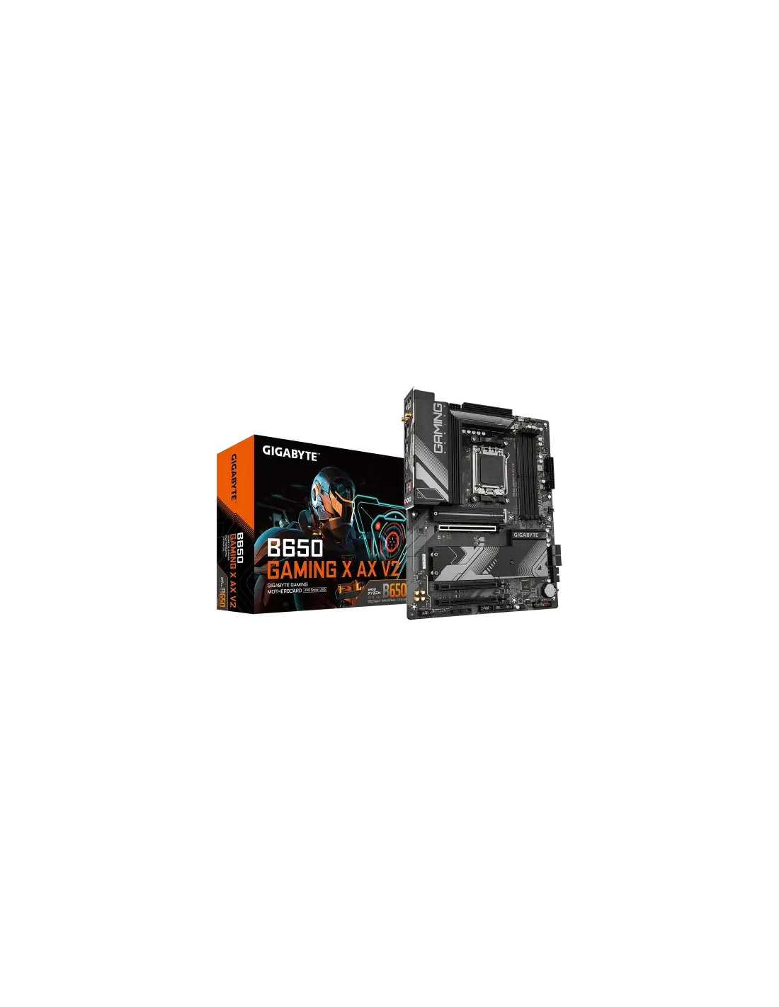 Gigabyte B650 GAMING X AX V2. Fabricante de procesador: AMD, Socket de procesador: Zócalo AM5, Procesador compatible: AMD Ryzen™ 5, AMD Ryzen 7 7th Gen, AMD Ryzen 9 7th Gen. tipos de memoria compatibles: DDR5-SDRAM, Memoria interna máxima: 192 GB, Tipo de ranuras de memoria: DIMM. Interfaces de disco de almacenamiento soportados: M.2, PCI Express 4.0, SATA III, Tipos de unidades de almacenamiento admitidas: HDD & SSD, Niveles RAID: 0, 1, 10. Máxima resolución: 4096 x 2160 Pixeles. Conector USB: USB tipo A, USB Tipo C