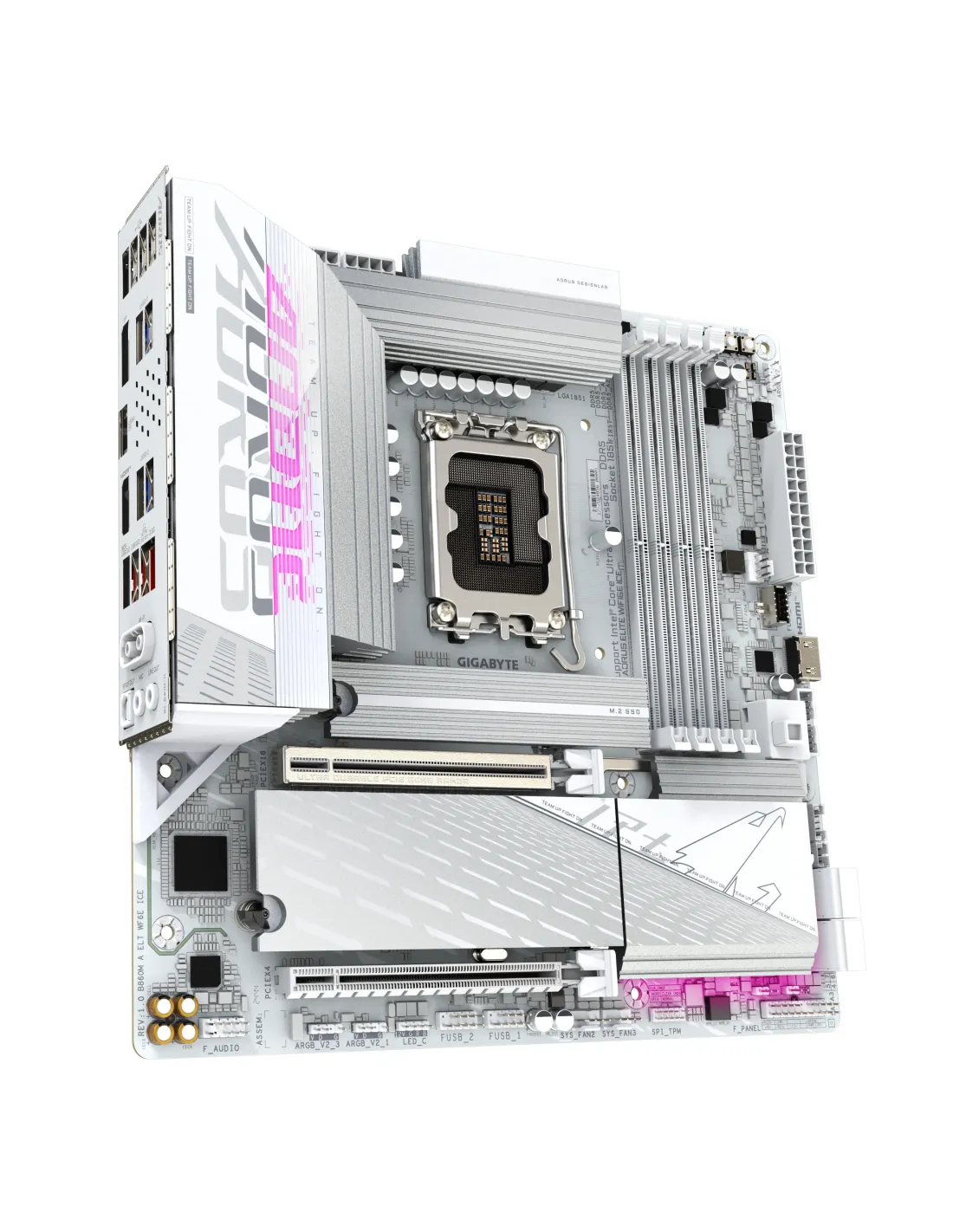 PLACA GIGABYTE B860M AORUS ELITE WF6E ICE,INTEL,1851,B860,4DDR5,256GB,HDMI+DP+USB4,4SATA+3M.2,2.5GBELAN+WIFI6E+BT5.3,6USB3.2,MATX