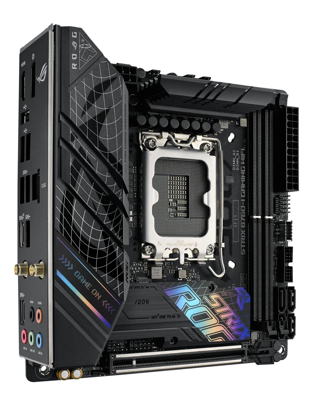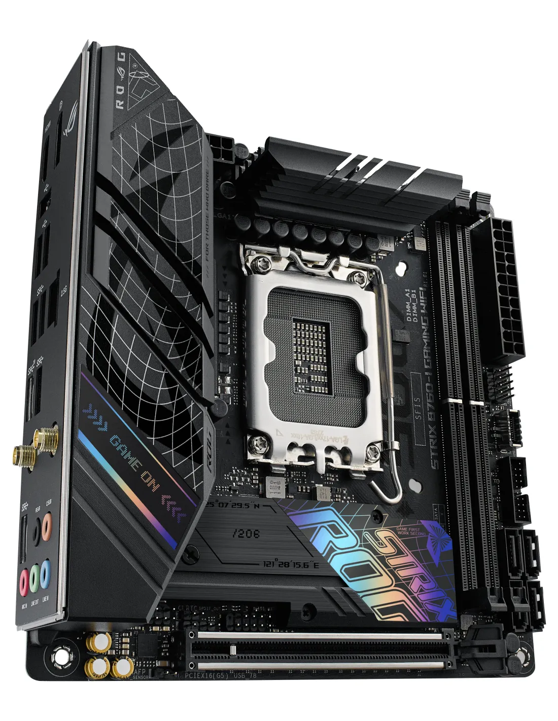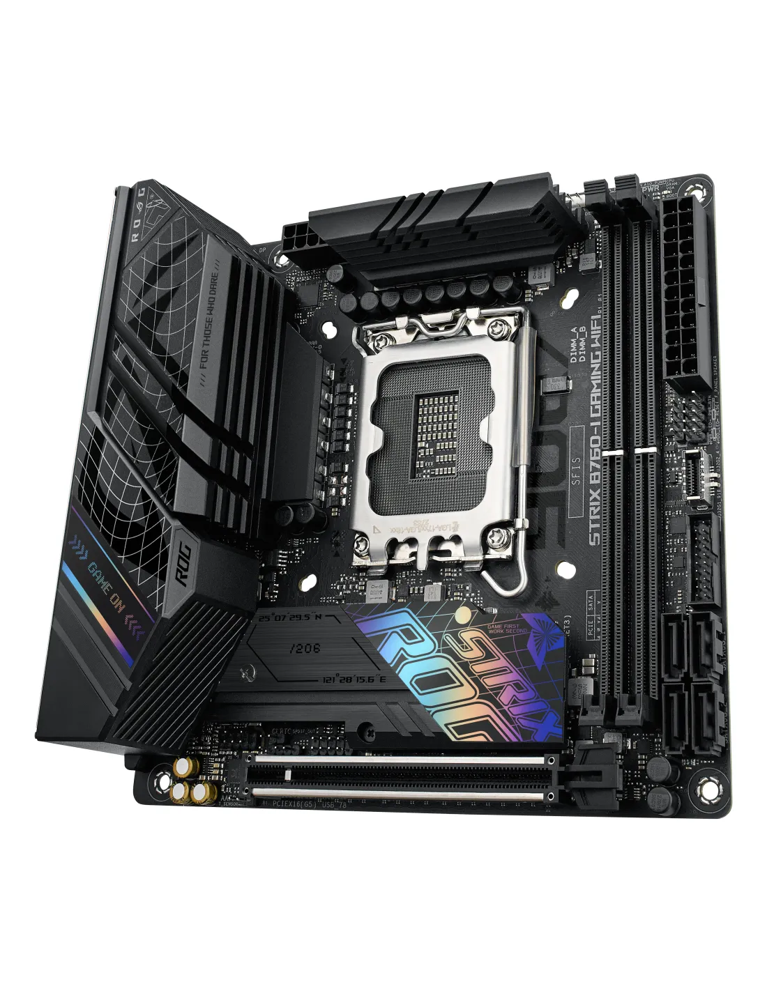 La Asus ROG Strix B760-I Gaming WiFi es una placa base diseñada para los procesadores Intel Core de 12ª y 13ª generación con zócalo Intel LGA 1700.