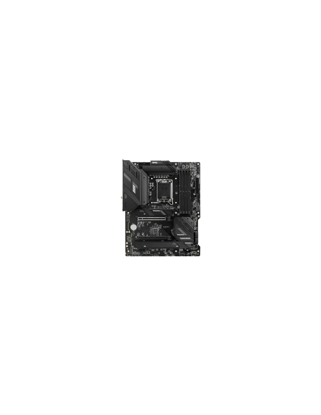 MSI MAG B760 TOMAHAWK WIFI. Fabricante de procesador: Intel, Socket de procesador: LGA 1700, Procesador compatible: Intel® Celeron®, Intel® Pentium® Gold. tipos de memoria compatibles: DDR5-SDRAM, Memoria interna máxima: 128 GB, Tipo de ranuras de memoria: DIMM. Interfaces de disco de almacenamiento soportados: M.2, SATA III, Niveles RAID: 0, 1, 5, 10. Tipo de interfaz ethernet: 2.5 Gigabit Ethernet, Estándar Wi-Fi: Wi-Fi 6E (802.11ax), Wi-Fi estándares: 802.11a, 802.11b, 802.11g, Wi-Fi 4 (802.11n), Wi-Fi 5 (802.11ac), Wi-Fi 6 (802.11ax), Wi-Fi 6E.... Componente para: PC, Factor de forma: ATX, Familia del chipset: Intel