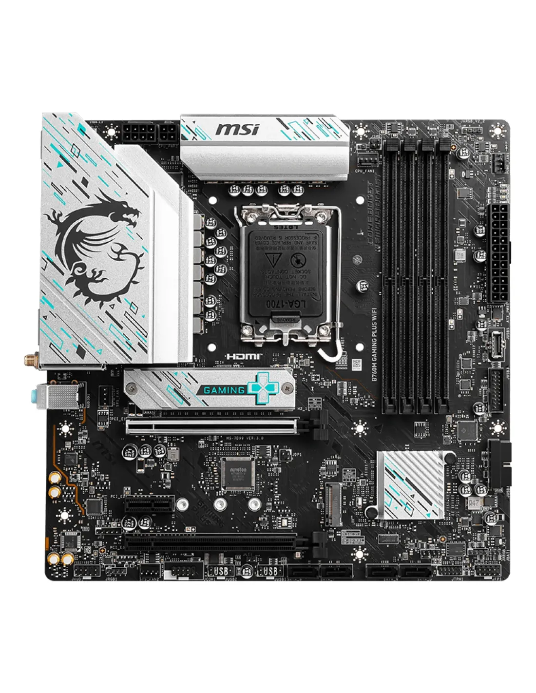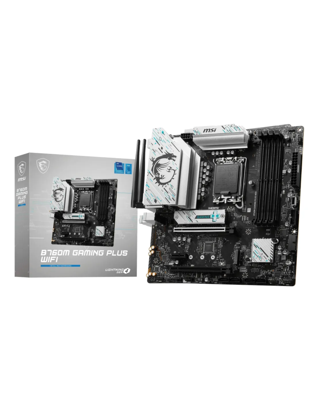 PLACA MSI B760M GAMING PLUS WIFI,INTEL,1700,B760,4DDR5,192GB,2HDMI+2DP,4SATA+2M.2,5USB 3.2+2USB-C,2.5GB+WIFI6E+BT5.3,MATX