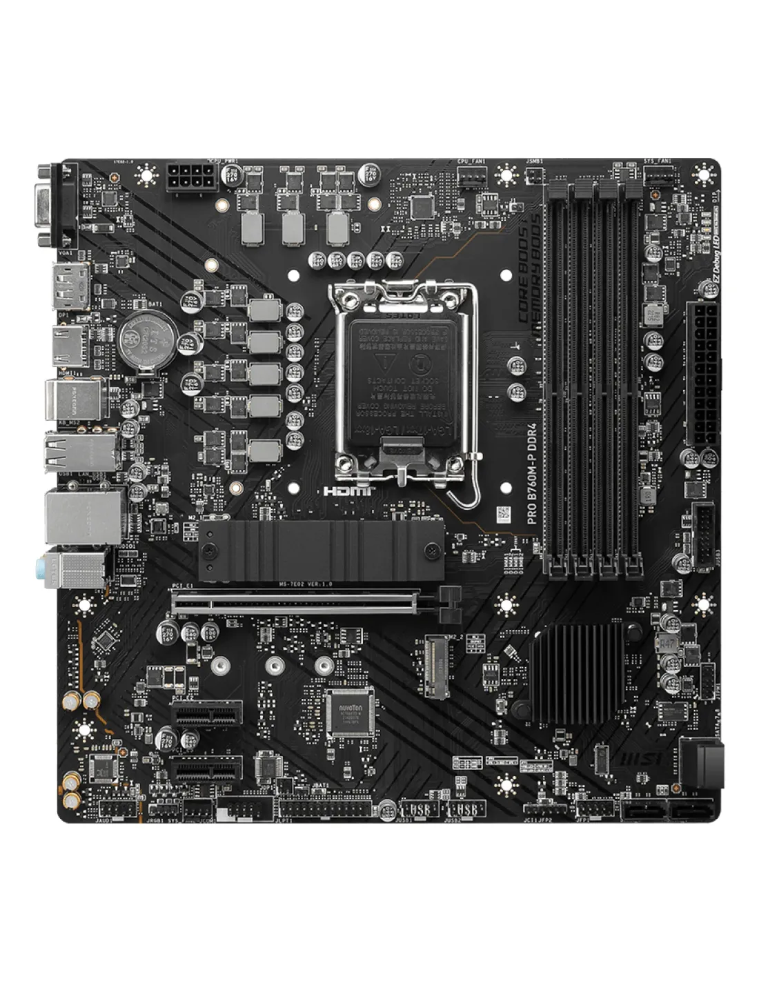PLACA MSI PRO B760M-P DDR4,INTEL,1700,B760,4DDR4,128GB,VGA+HDMI+DP,4SATA+2M.2,3USB3.2+USB-C,GBLAN,MATX