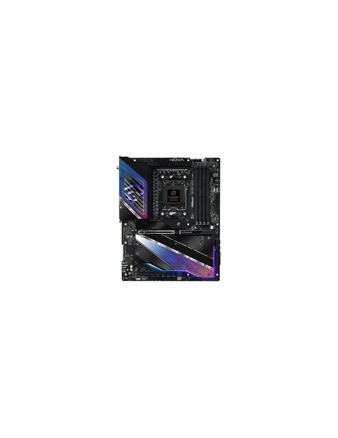 Asrock MK X870E NOVA WIFI. Fabricante de procesador: AMD, Socket de procesador: Zócalo AM5, Procesador compatible: AMD Ryzen 7000 Series, AMD Ryzen 8000 Series, AMD Ryzen 9000 Series. tipos de memoria compatibles: DDR5-SDRAM, Memoria interna máxima: 256 GB, Tipo de ranuras de memoria: DIMM. Interfaces de disco de almacenamiento soportados: M.2, SATA III, Tipos de unidades de almacenamiento admitidas: HDD & SSD, Niveles RAID: 0, 1, 10. Tipo de interfaz ethernet: 5 Gigabit Ethernet, Controlador LAN: Realtek RTL8126, Estándar Wi-Fi: Wi-Fi 7 (802.11be). Componente para: PC, Factor de forma: ATX, Familia del chipset: AMD
