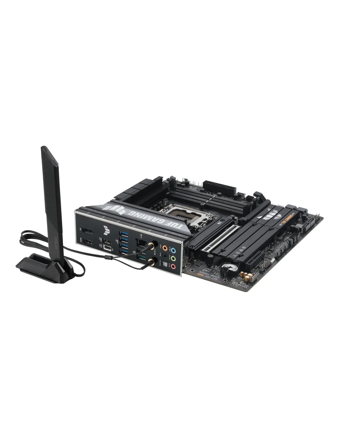 ASUS TUF GAMING B860M-PLUS WIFI. Fabricante de procesador: Intel, Socket de procesador: LGA 1851 (Socket V1), Procesador compatible: Intel Core Ultra (Series 2). tipos de memoria compatibles: DDR5-SDRAM, Memoria interna máxima: 256 GB, Tipo de ranuras de memoria: DIMM. Interfaces de disco de almacenamiento soportados: M.2, SATA III, Tipos de unidades de almacenamiento admitidas: HDD & SSD, Niveles RAID: 0, 1, 5, 10. Tipo de interfaz ethernet: 2.5 Gigabit Ethernet, Estándar Wi-Fi: Wi-Fi 7 (802.11be), Wi-Fi estándares: Wi-Fi 7 (802.11be). Componente para: PC, Factor de forma: micro ATX, Familia del chipset: Intel