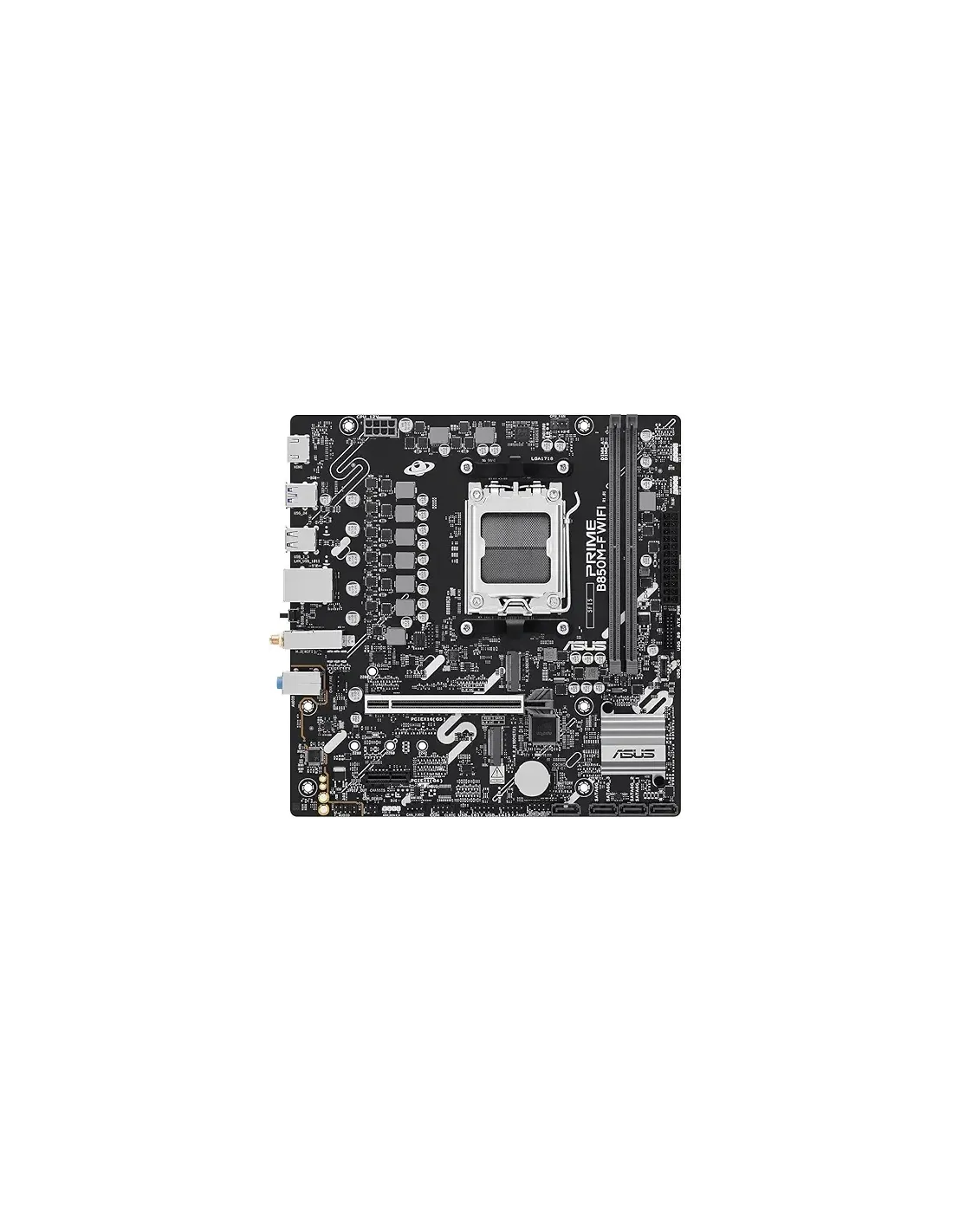 Placa base ASUS PRIME B850M-F con factor de forma micro-ATX, perfecta para construcciones compactas y eficientes .Conectividad Inalámbrica: Equipada con WiFi integrado para una conexión a internet sin cables y una experiencia de red más limpia y ordenada. Rendimiento AMD: Compatible con procesadores AMD de última generación, ofreciendo un excelente rendimiento para gaming y tareas intensivas. Sistema de refrigeración optimizado con disipadores de calor y diseño PCB que garantiza la estabilidad durante uso intensivo. Conjunto completo de conexiones incluyendo USB de alta velocidad y opciones de almacenamiento M.2 para máxima versatilidad.